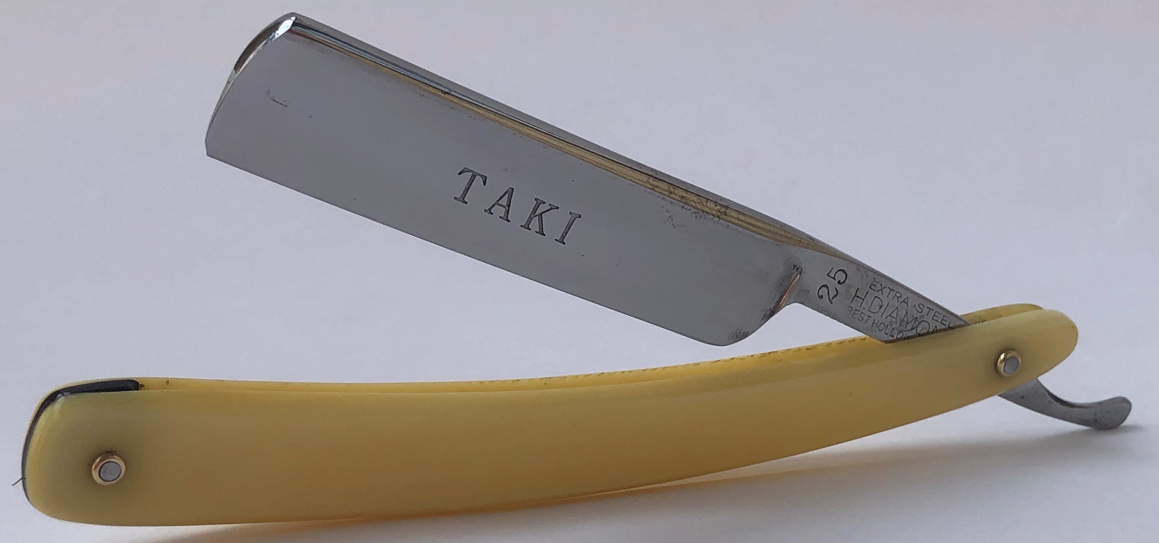 Такие ручки ставили на профессиональные "ПАРИКМАХЕРСКИЕ" модели за номером 1 от Вачи.(Может еще на какие, не помню).Смею предположить, что и эта более узкая "ВЕСНА" предназначалась для парикмахерского использования. Идеальная геометрия полотна:кромочка равномерна по всей длине.Родная коробочка(61 г.в) и инструкция(62 г.в.) в комплекте!