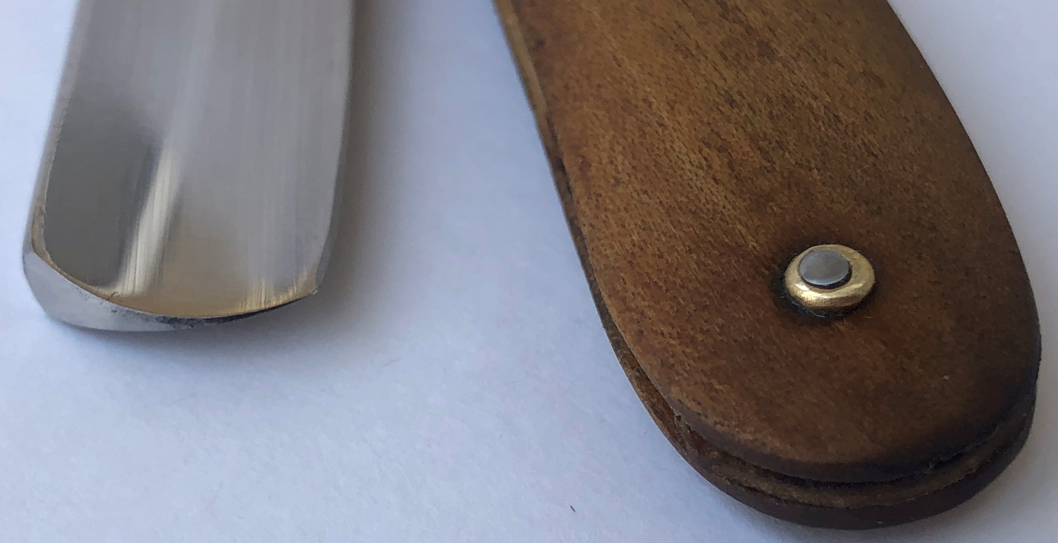 Идеальная геометрия клинка:кромочка равномерна по всей длине.Сталь чистая, без видимых дефектов.Поставил внутренние шайбы,для избежания радиальных царапин на эрле, в результате трения оправы о клинок. Бритва заточена и готова к бритью.
