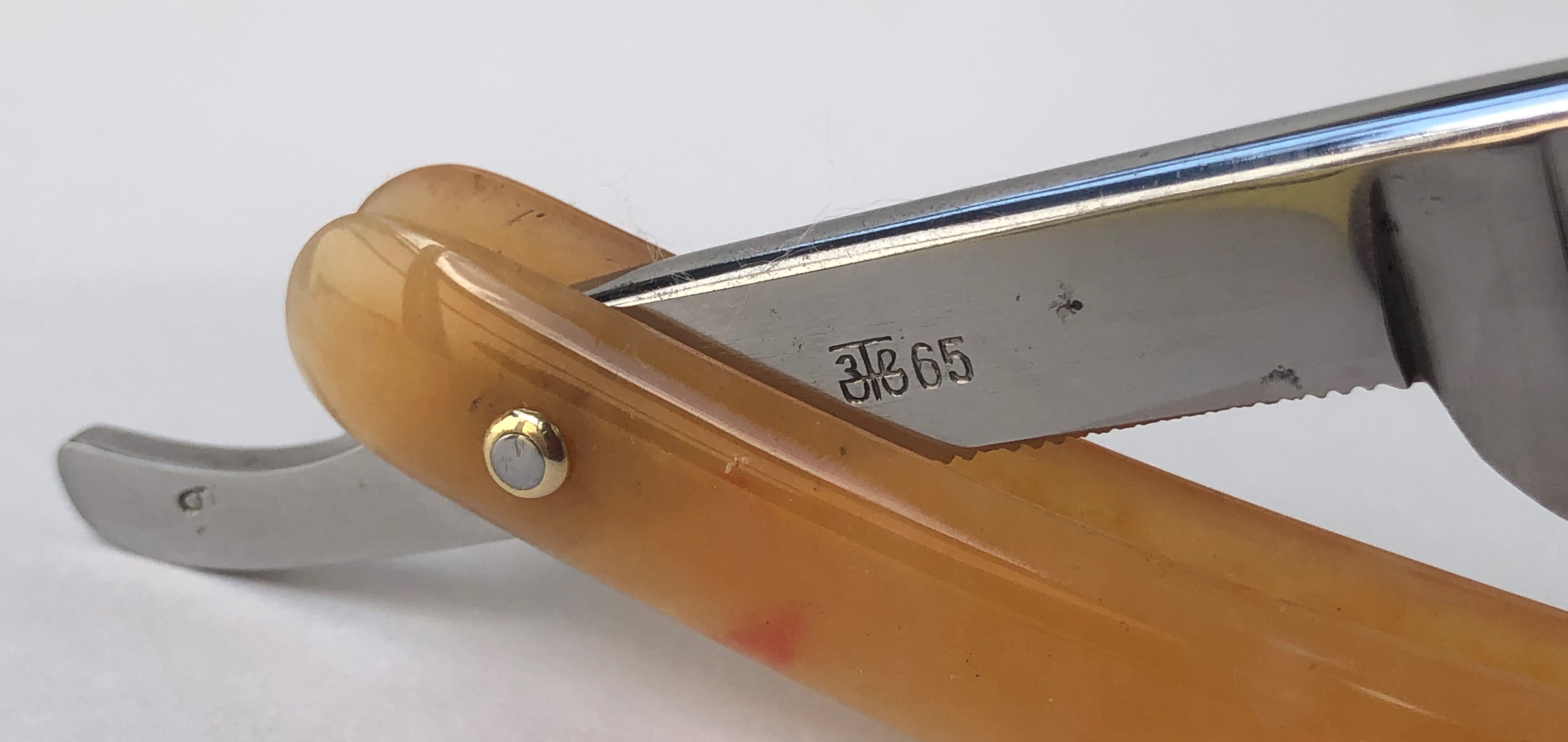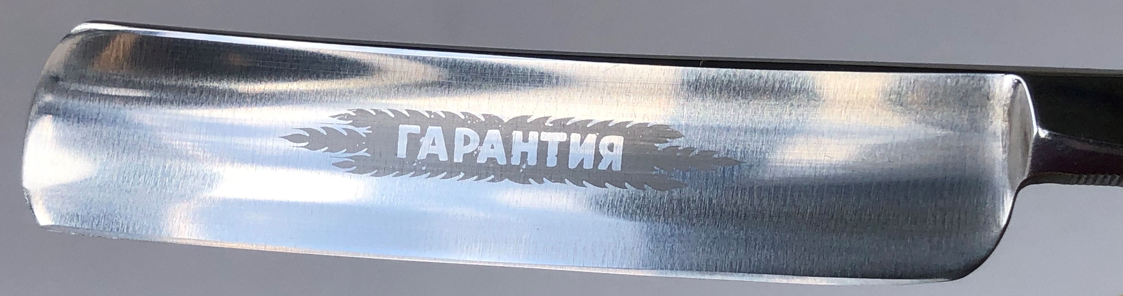 (Хотел обратить внимание на нечеткий штамп.Это заводской нюанс, а не стертость в результате чистки. Есть у меня в коллекции совершенно новая бритва с таким же дефектом, а также ранее попадались 2х-заковные с тем же самым.)