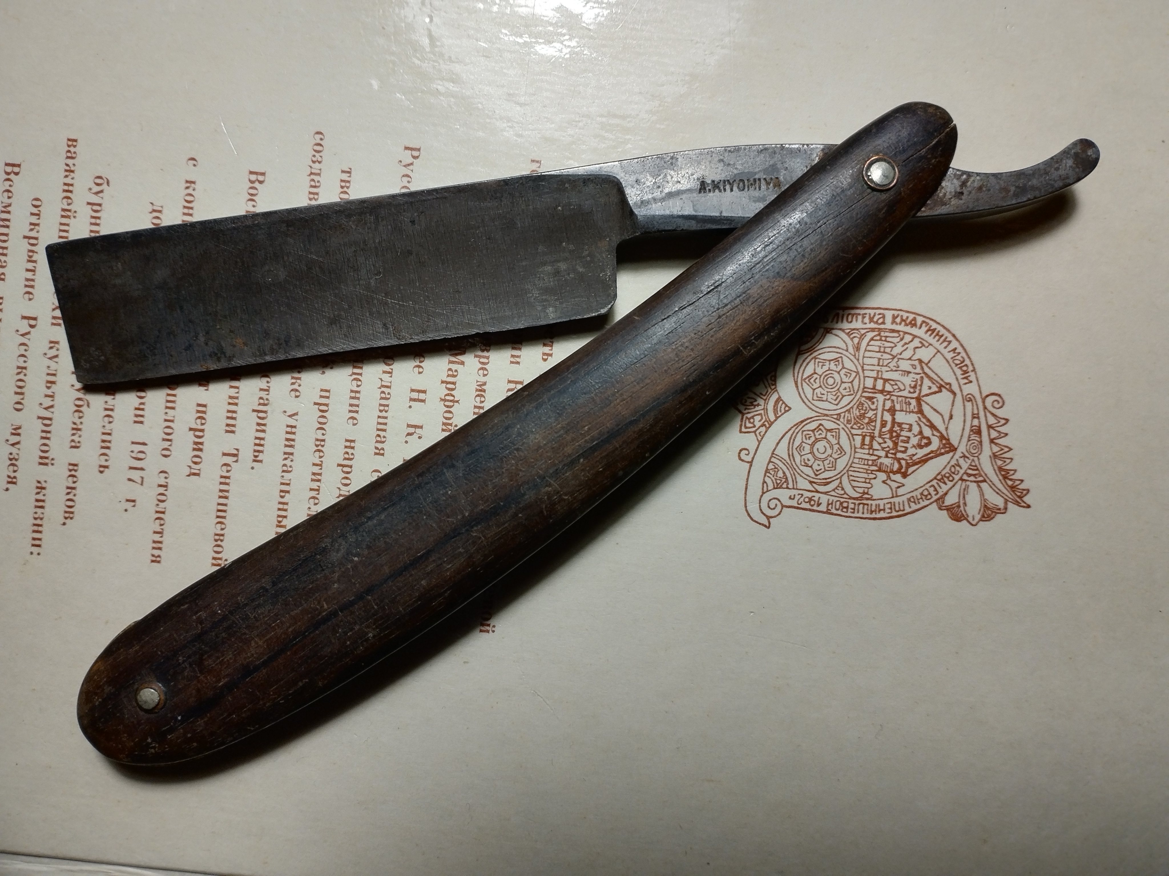 Помогите опознать бритвыИдеал бритвы, как по мне, моя любимая, прадедовская. Датировка - первая мировая. Помогите опознать бритвыничего особо не нашлось, но KIYOMIYA - японская фамилия, а в справочнике "Список японских мастеров-оружейников" (Index of Japanese Swordsmiths, автор Markus Sesko) есть два KIYOMIYA довоенно-военного периода (1930-1945) кто делал мечи. В принципе ничего не мешало им делать бритвы, если спрос был. Но, это предположение. Разные ERN из Золингена (F.ERN и C. Friedrich Ern)Здравствуйте товарищи. Подскажите новичку,что за бритва?