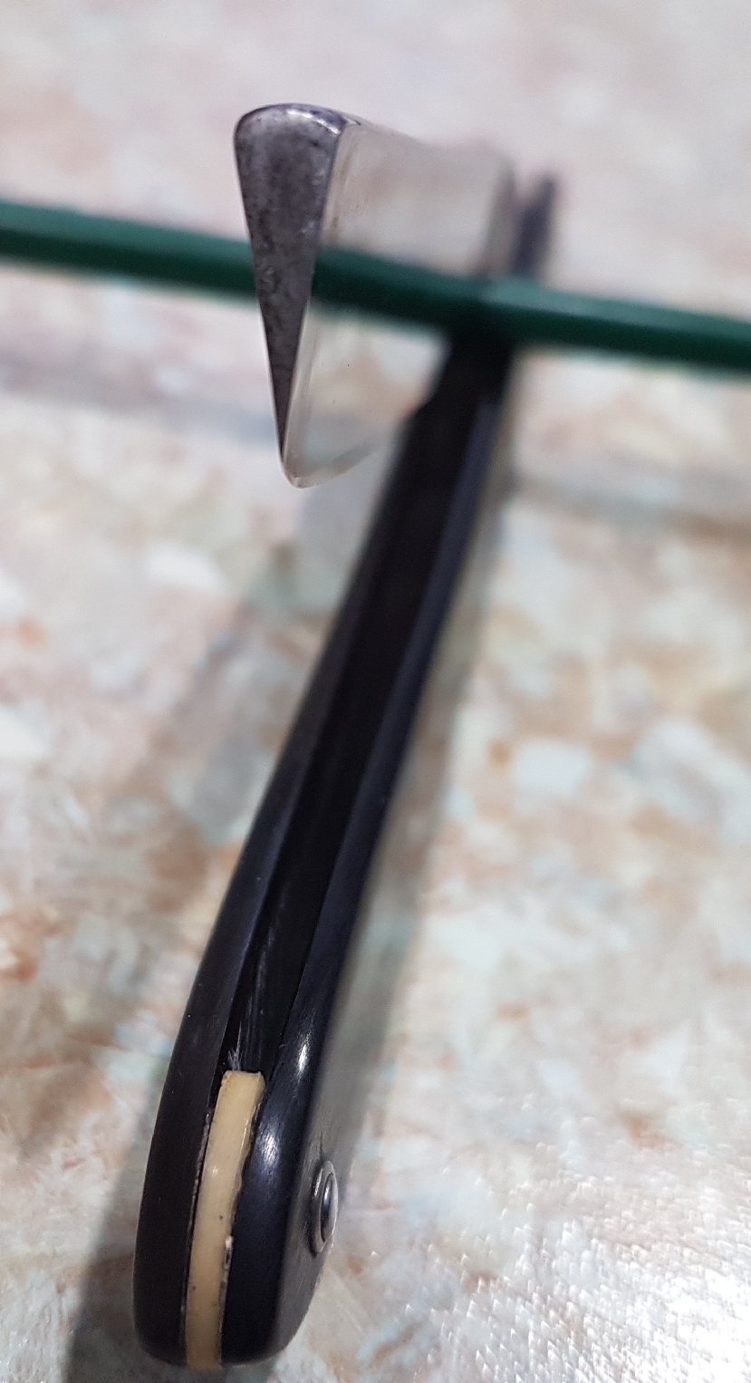 Я показывал клинок и клеймо а не оправку.А она действительно с француза 19 века. Не пропадать же добру. К тому же она не на продажу... бреет классно. Простите великодушно.