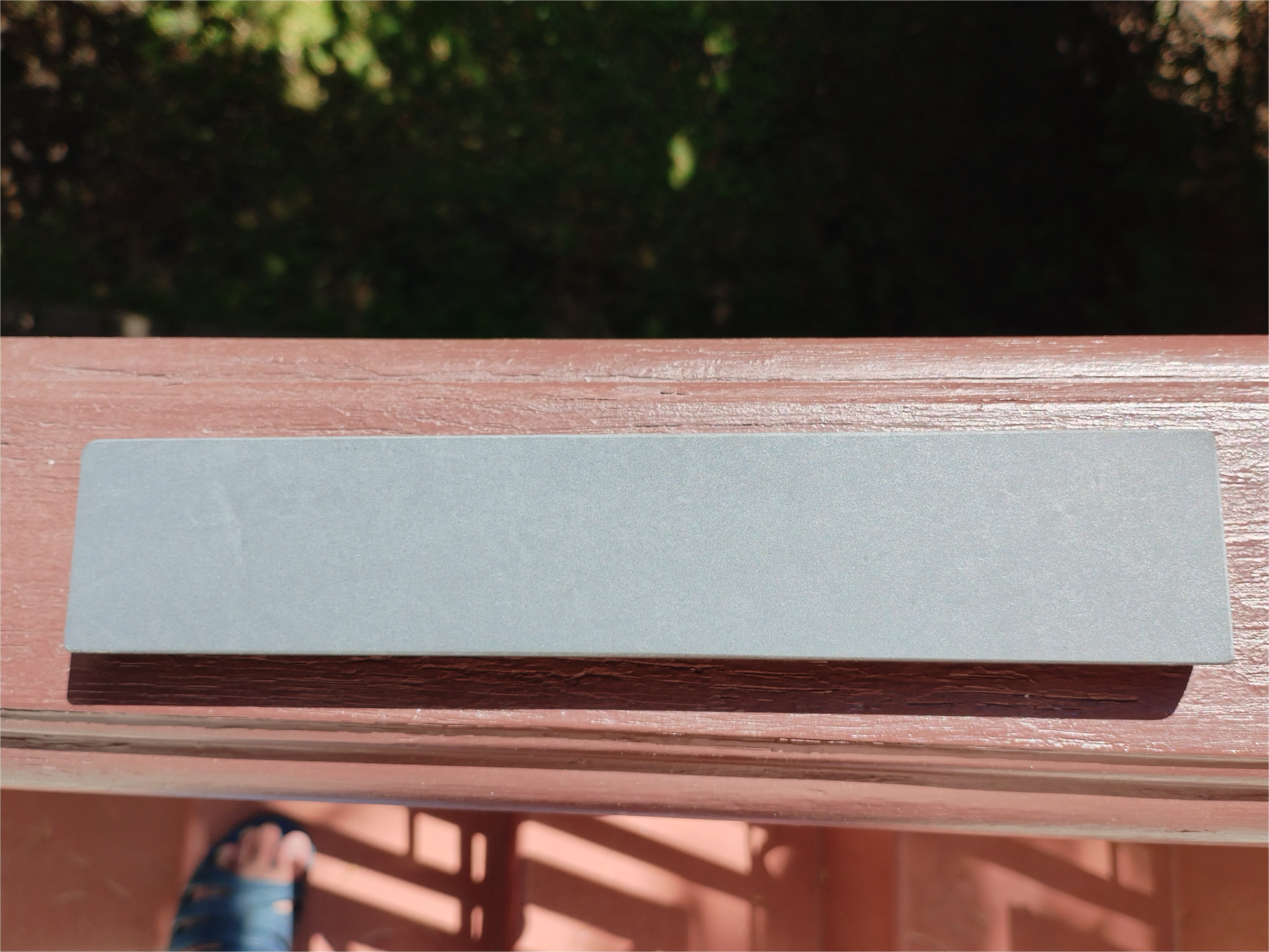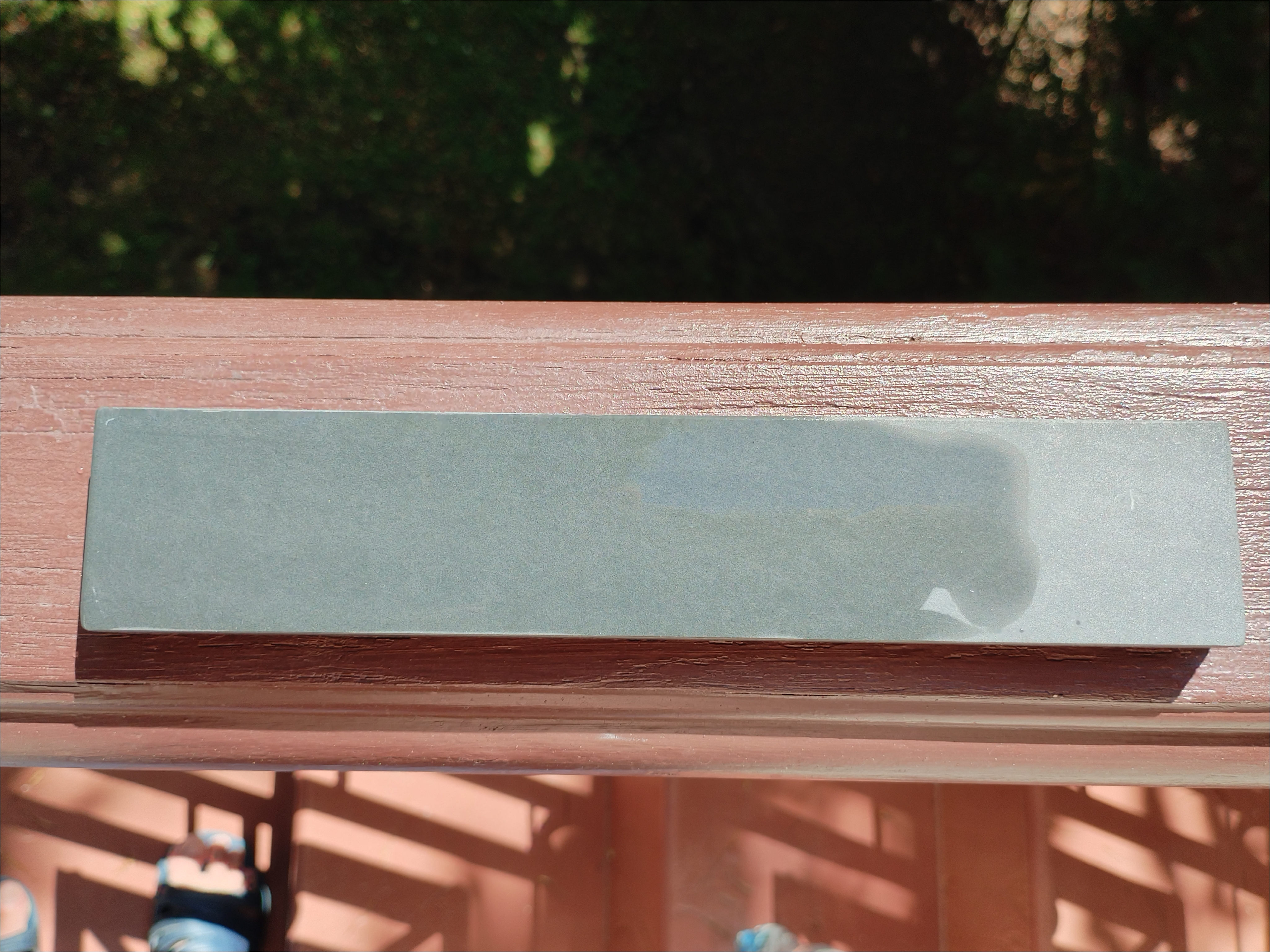 Прошу вашей помощи в атрибутировании камня, который недавно мне посчасливилось заполучить. Цвет матовый черный, суспензия выделяется охотно и имеет белесый цвет. На ощупь гладкий, бархатистый. Насколько я понял, это какой-то сланец, но вот какой? С торцов и боковой стороны видны характерные следы распила. Размеры: 182х33х14 мм. Камень был поцарапан, поэтому пришлось выровнять и притереть его с одной стороны 800, с другой 1000. Ваше мнение, что это может быть за сланец?