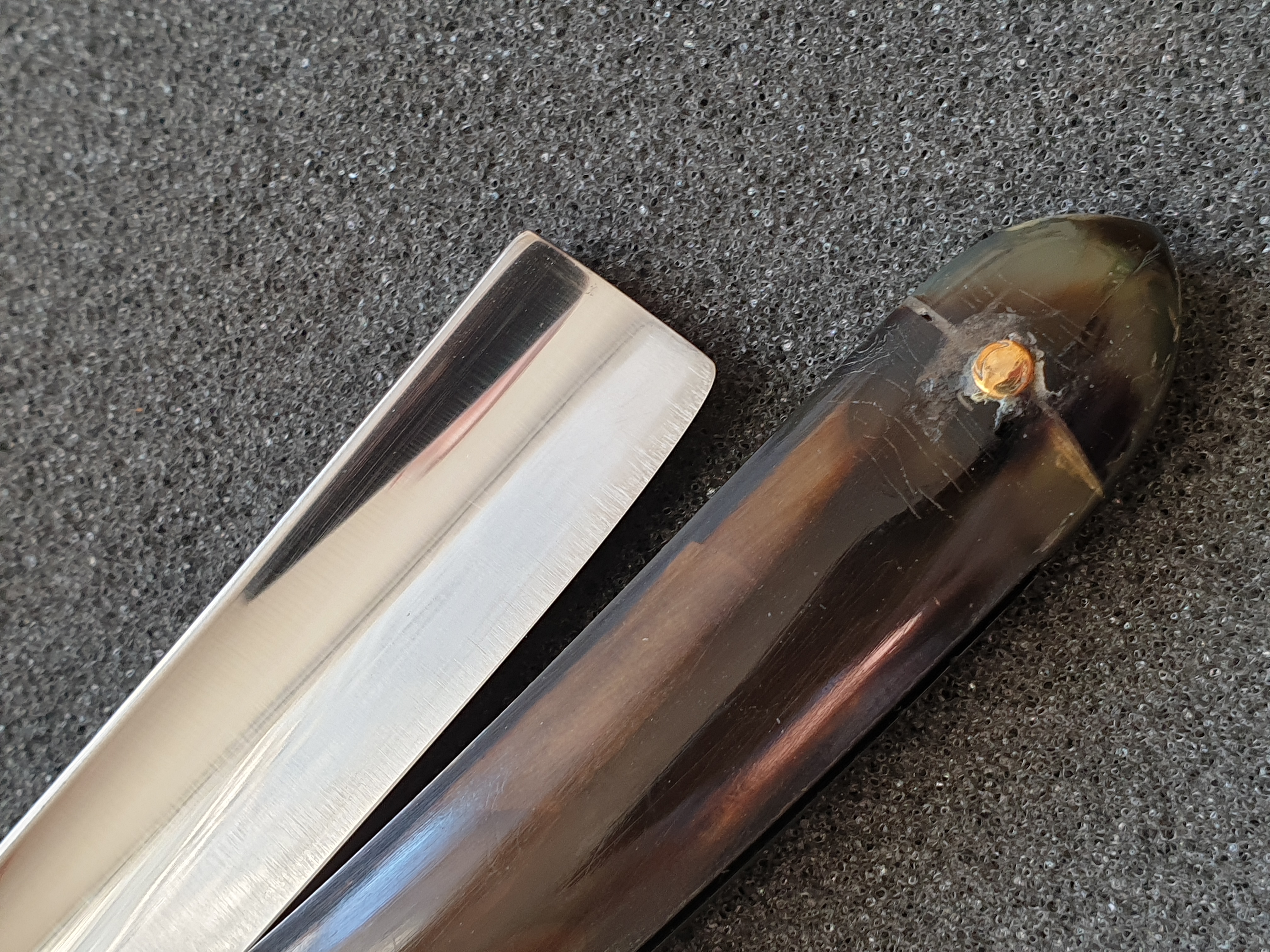 Продаётся от S&T104. Bengall, ширина клинка 16мм, ручка - рог. Все родное, сделана свежая заточка и заклеена трещина рога у дальнего пина ручки.