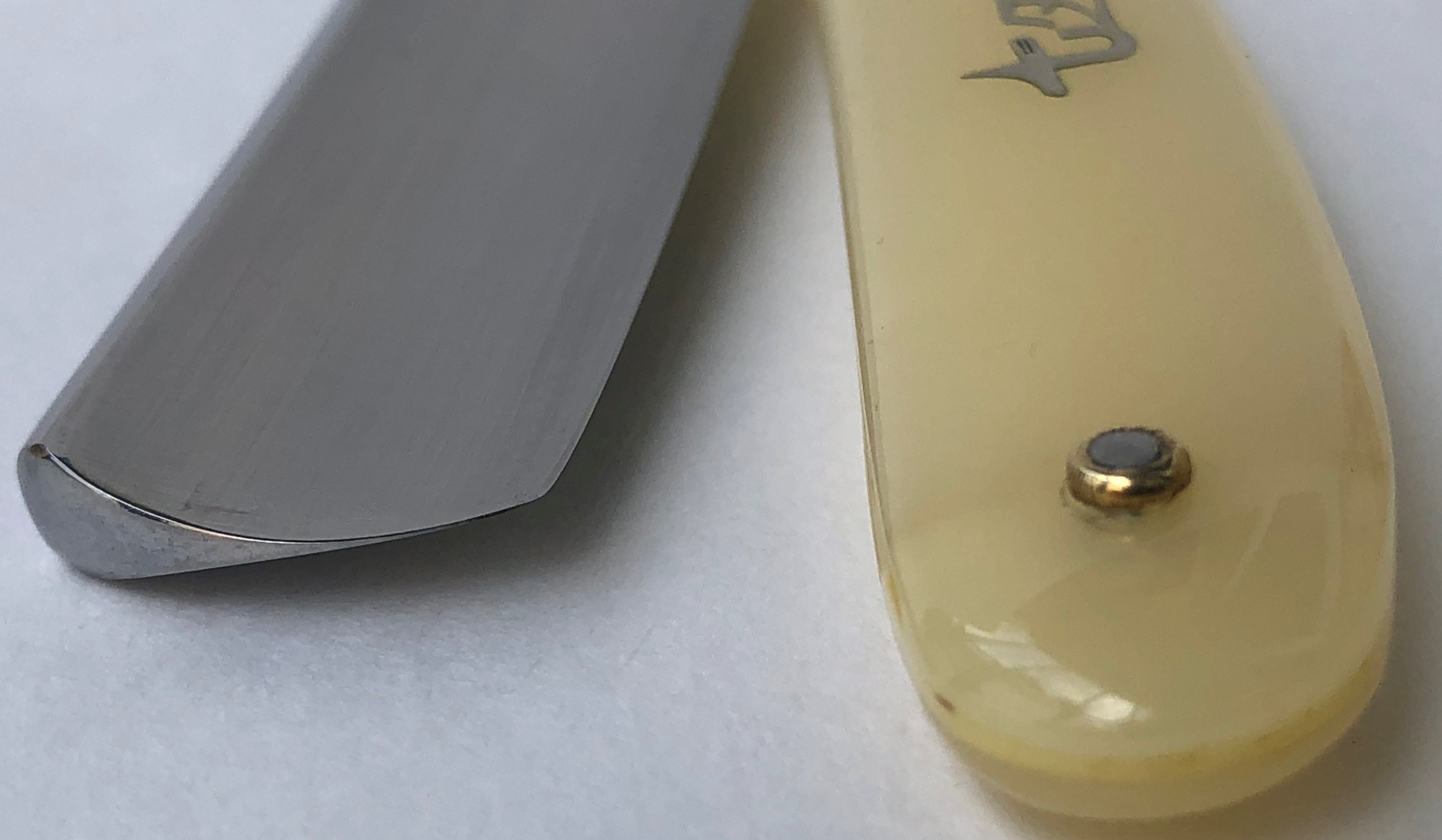 Бритва в очень хорошем состоянии, без активных и еле заметных следов пользования. Ничего не разбиралось и не ремонтировалось. Все в оригинале.Идеальная геометрия полотна.Кромочка чистая от дефектов. Несколько незначительных "точек времени" не стал трогать за ненужностью.Удобная форма клинка. Достаточно тяжелая.Эффектный, ажурный обушок.Очень неплохой вариант для коллекции и для бритья. Исходя из своего опыта могу сказать, что именно нержавеющие стали Фриодур были наиболее подходящие для бритв.