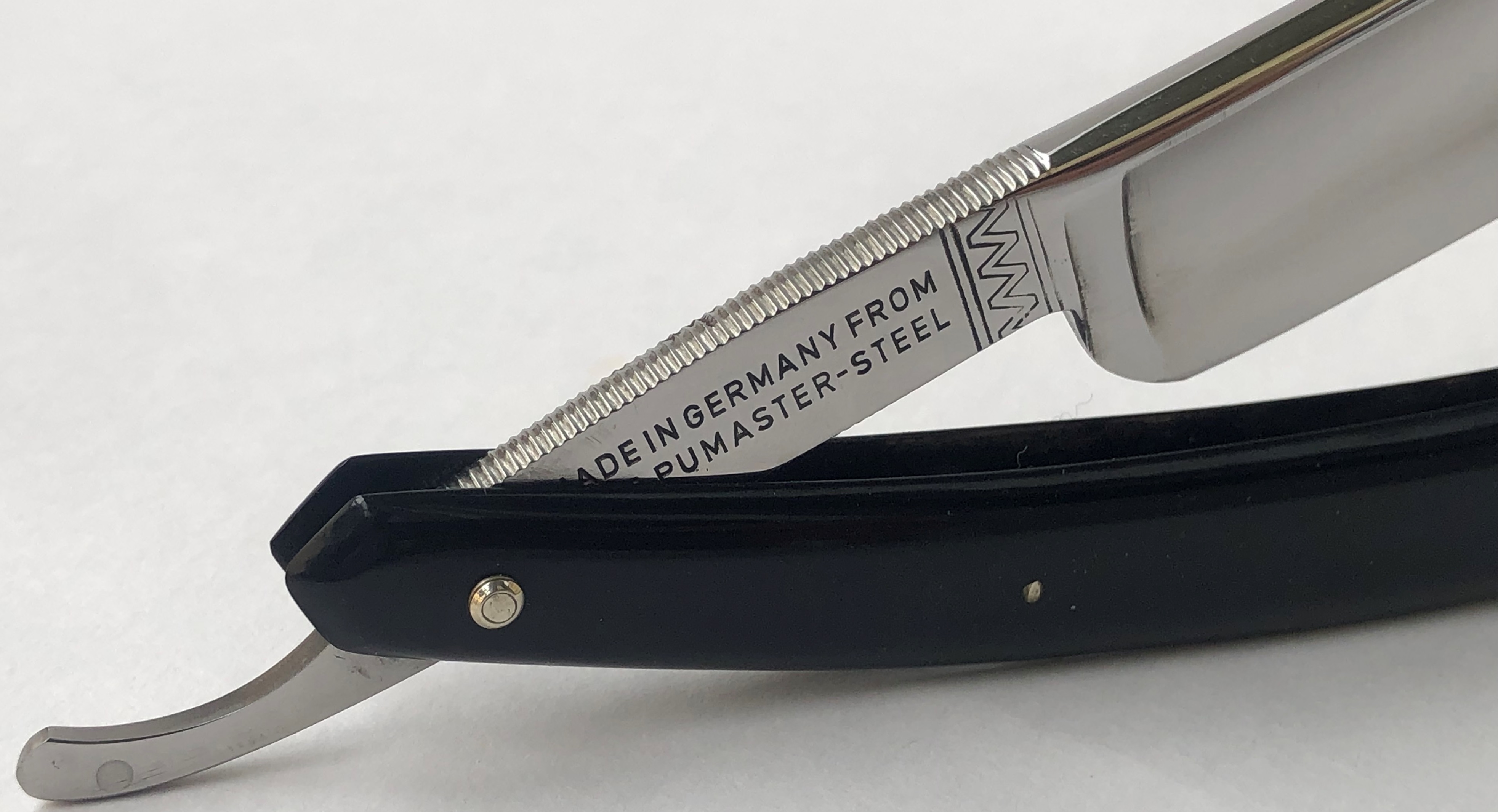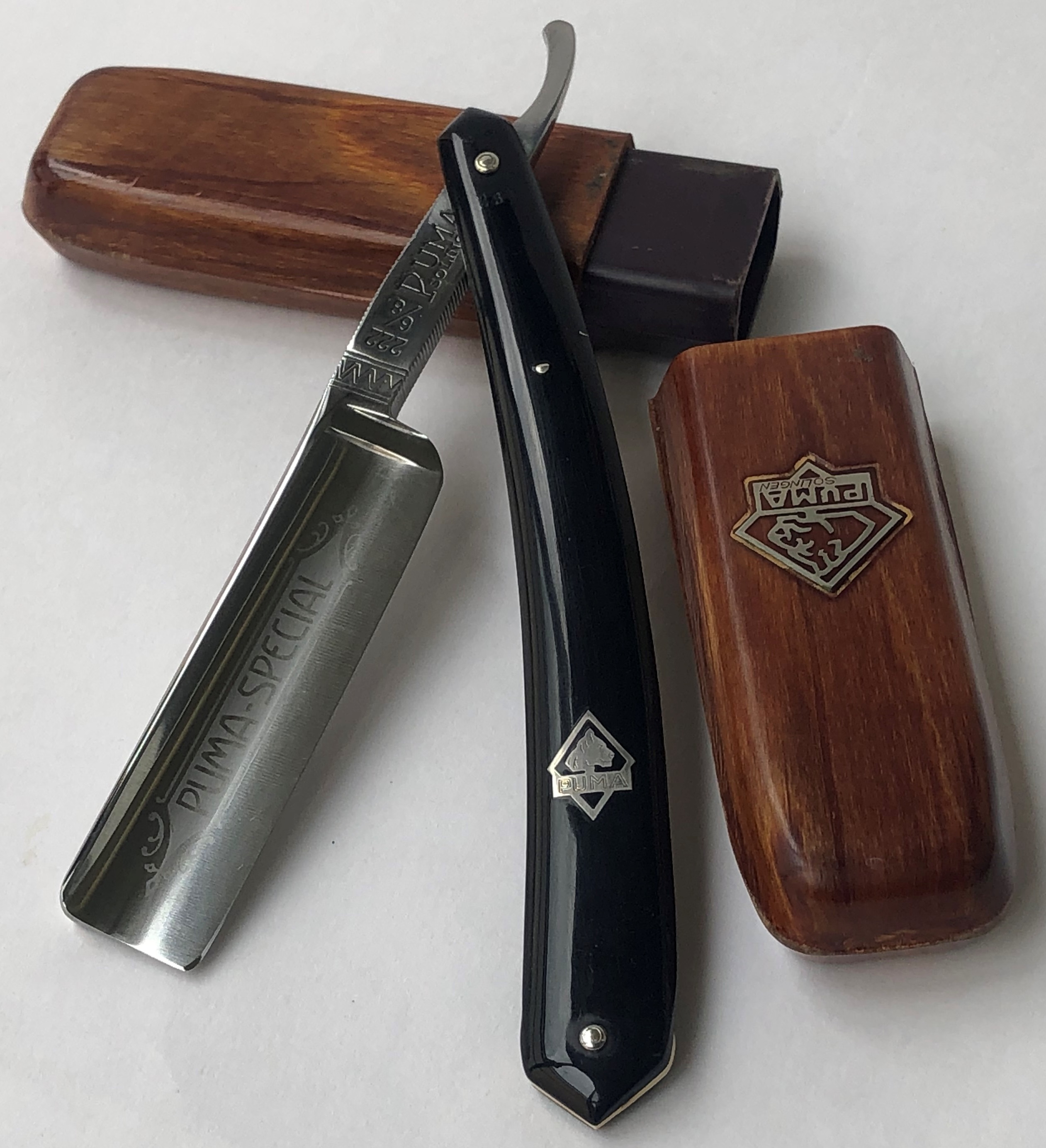 Ширина полотна-21.0 мм. Толщина обушка-6.0 мм. Полная вогнутость. Фирменная "пумовская" углеродистая сталь-PUMASTER Примерно 1960-70-е годы производства. Бритва коллекционного состояния.Ничего не разбиралось и не ремонтировалось.Все в оригинале.Заводская шлифовка и полировка полотна. Идеальная геометрия клинка. Кромочка равномерна по всей длине и еле заметна. Сталь чистая, без видимых дефектов. Гравировка четкая, без потертостей.Мощная трёх-пиновая оправа.Фирменная этикетка осталась.Родной бакелитовый кейс в наличии! Перед отправкой будет заточена и подготовлена к бритью. Не пропустите редкую вещь, от одного из самых известных немецких брендов, в свою коллекцию! Цена-35500 р с доставкой.ПРОДАН Внимание! Важная информация! Spoiler Show