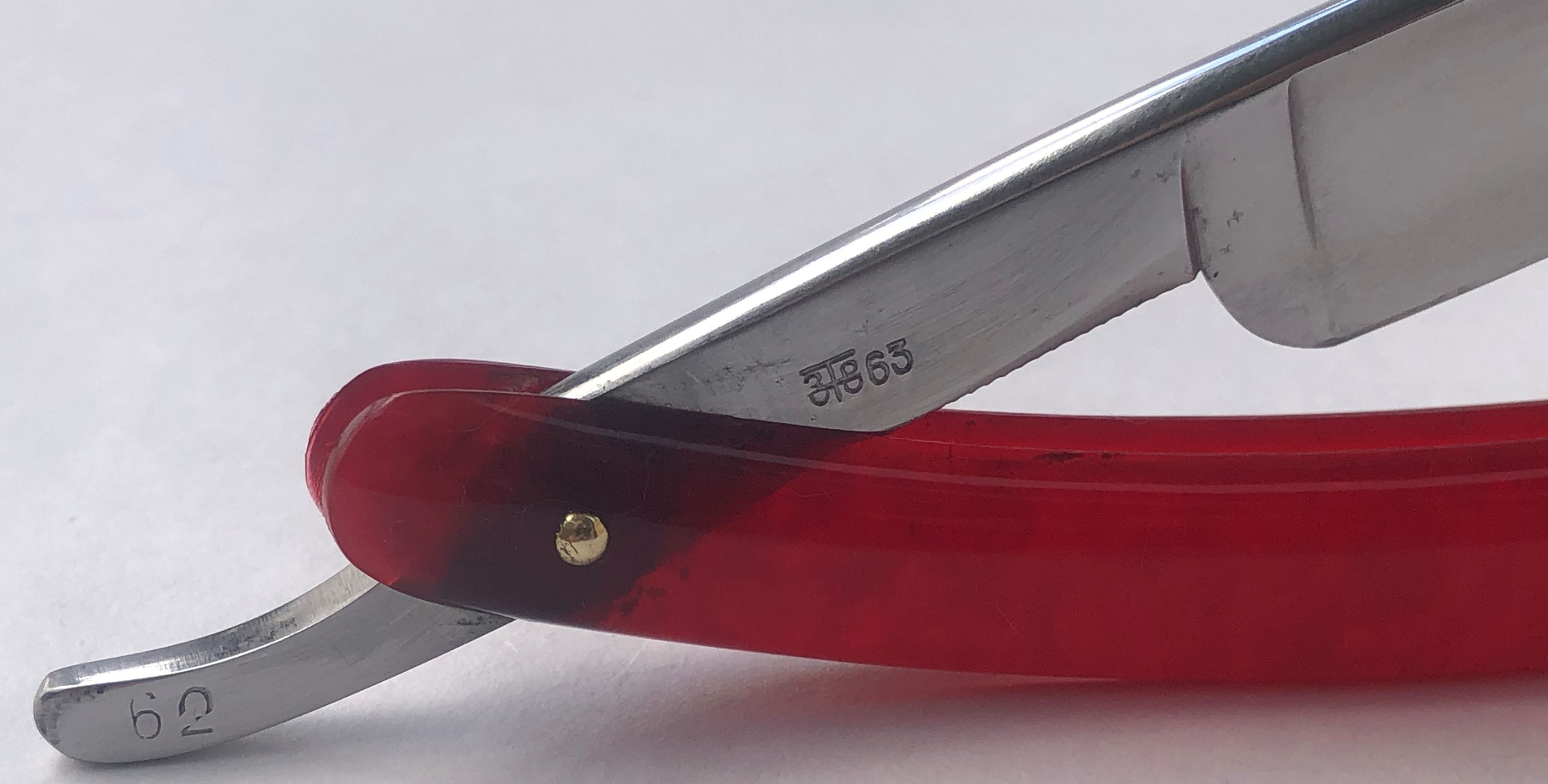 Клинок в прекрасном и малопользованном состоянии для своих лет. Бритва была разобрана, для приведения в порядок и снова собрана, с заменой пинов на двух-цветные пины, а также с добавлением внутренних шайб.
