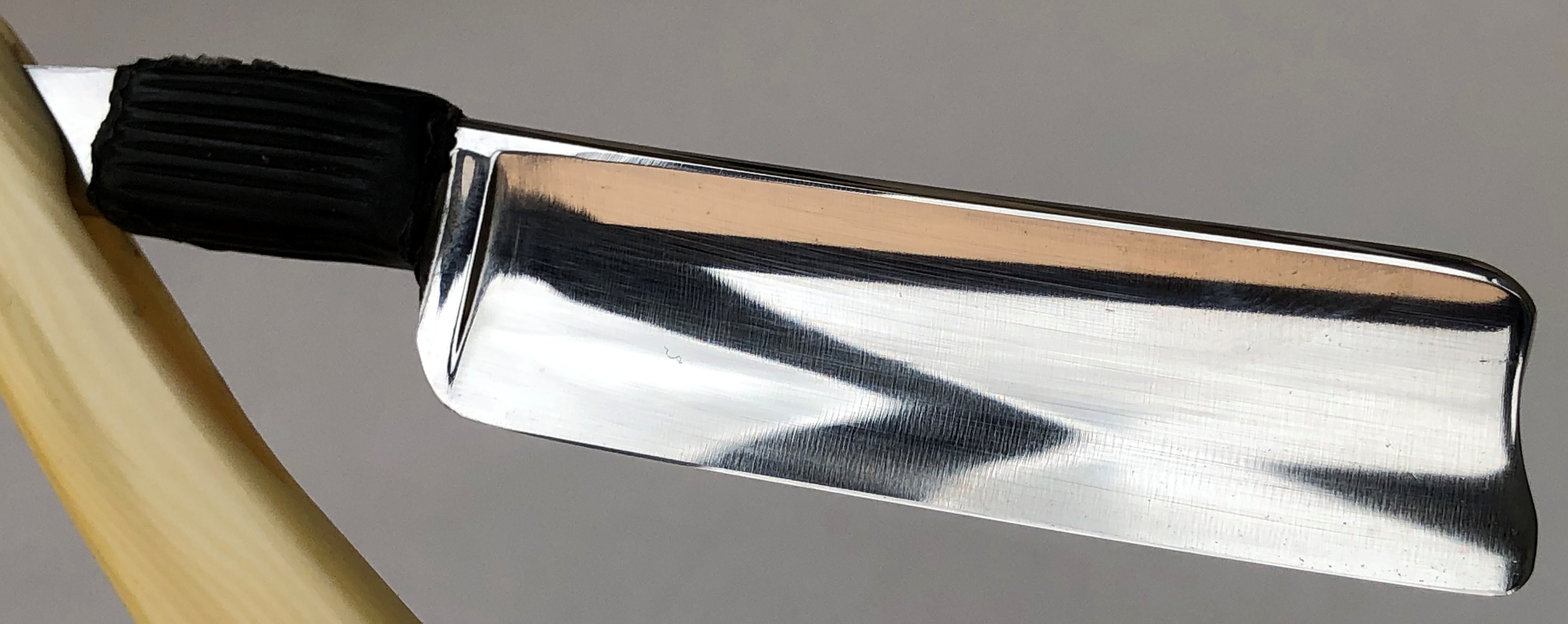 Ширина полотна-19.0 мм. Толщина обушка-6.5 мм. Сталь условно нержавеющая. Форма лезвия-1/2 клин. Середина прошлого века. Бритва в очень хорошем состоянии.Была разобрана для приведения в порядок.Добавление внутренних шайб и установка двух-цветных пинов.Кромка равномерна по всей длине.Тяжёлая. Перед отправкой будет заточена до состояния бритья. Цена-13500 р с доставкой.ПРОДАН Spoiler Show