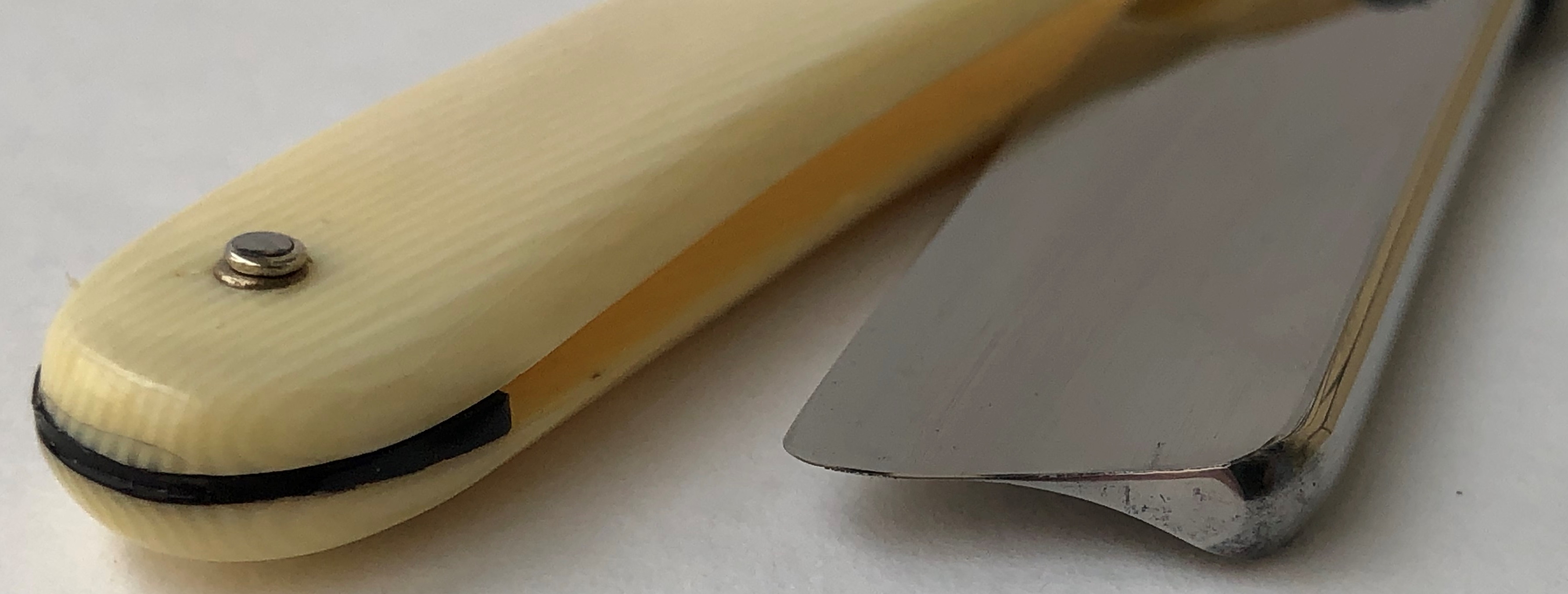 Ширина полотна-18.0 мм. Толщина обушка-5.0 мм. Полная вогнутость. Углеродистая сталь. Первая половина прошлого века. Привел в порядок старушку. Еще послужит долго.Перешлифовал и переполировал клинок. Замена пинов и внутренних шайб.Очень хорошее , рабочее состояние.Кромочка равномерна по всей длине. Красивая пластиковая ручка,"под черепаху".Удобная форма лезвия для новичка прежде всего, а также пойдет любому пользователю. Заточена и готова к бритью. Цена-9500 р с доставкой.ПРОДАН Spoiler Show