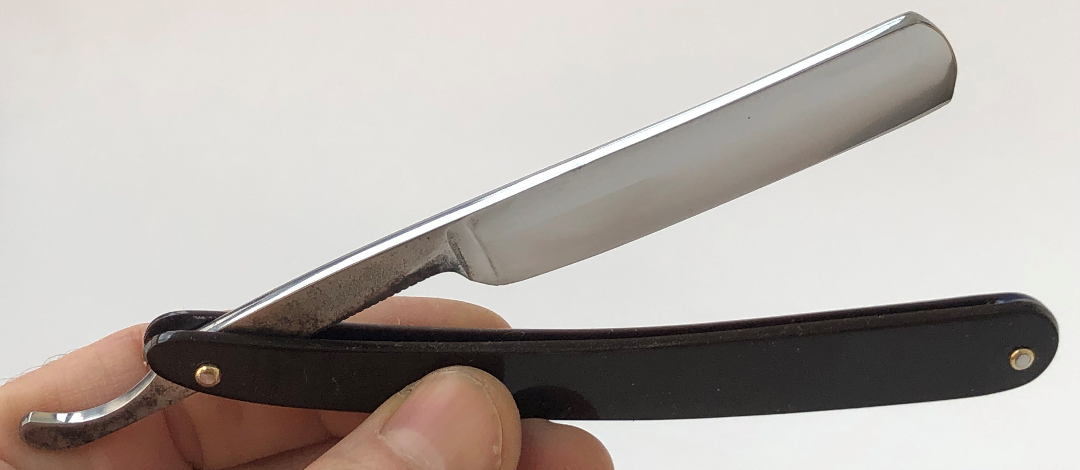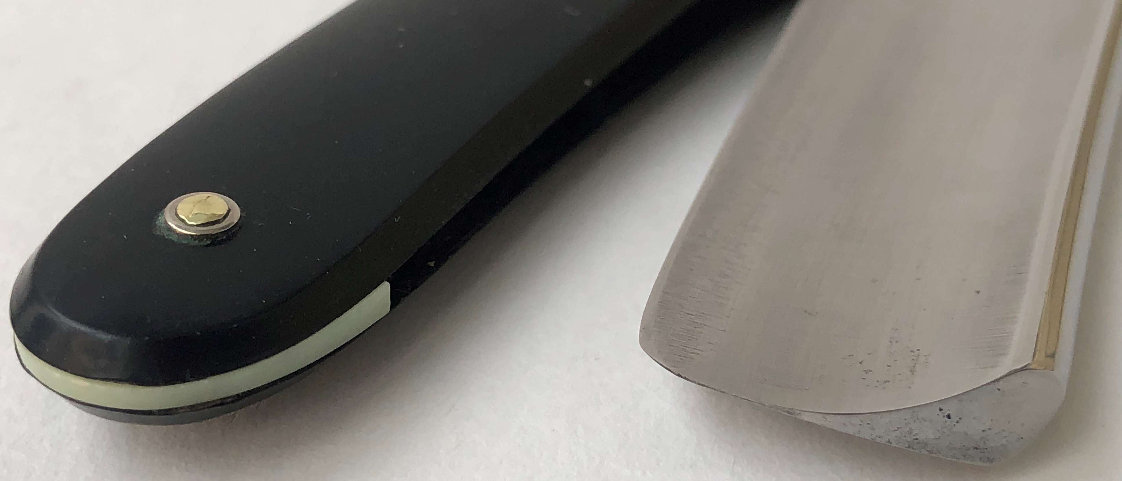 Клинок был восстановлен от следов износа. Немного скорректировал утОчку обушка, перешлифовал и умеренно отполировал.Скошенная пятка, по всей видимости бритва ранее использовалась барберами.Кромочка идеально ровная.Поменял пины на втулки и добавил внутренние шайбы. Одна плашка немного деформирована, но совершенно не критично, и лезвие закрывается по центру.В общем и целом очень приличная, с шикарной сталью старушка, получившая вторую жизнь. И абсолютно недорогая, по цене обычной ординарной непользованной советской бритвы. Особенно подойдет для новичка или любому товарищу, для кого важнее прежде всего качество самого инструмента.