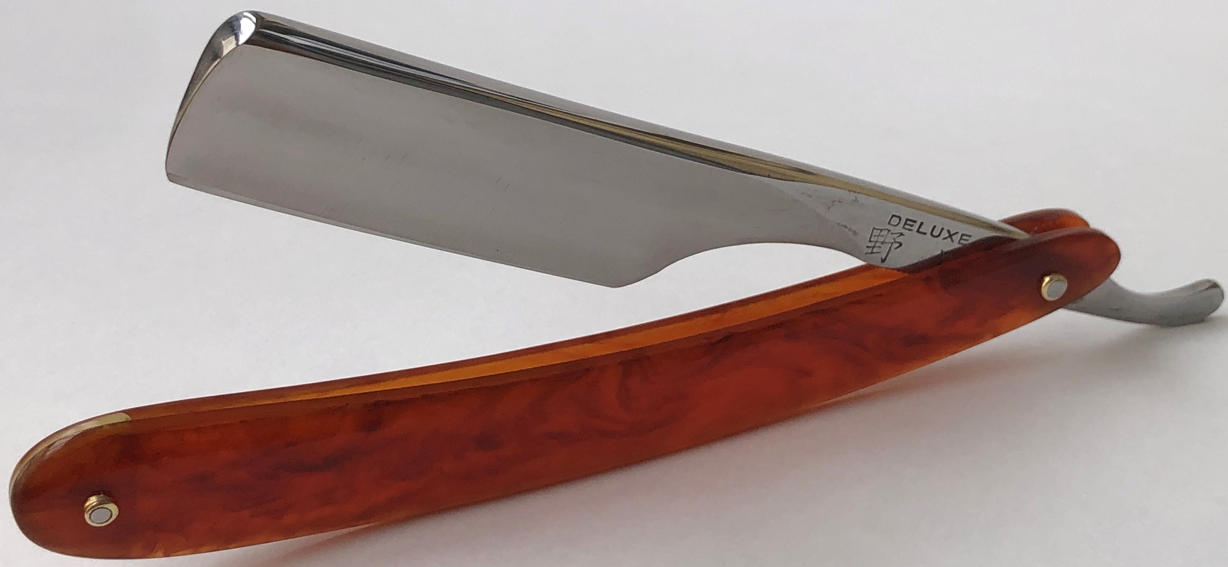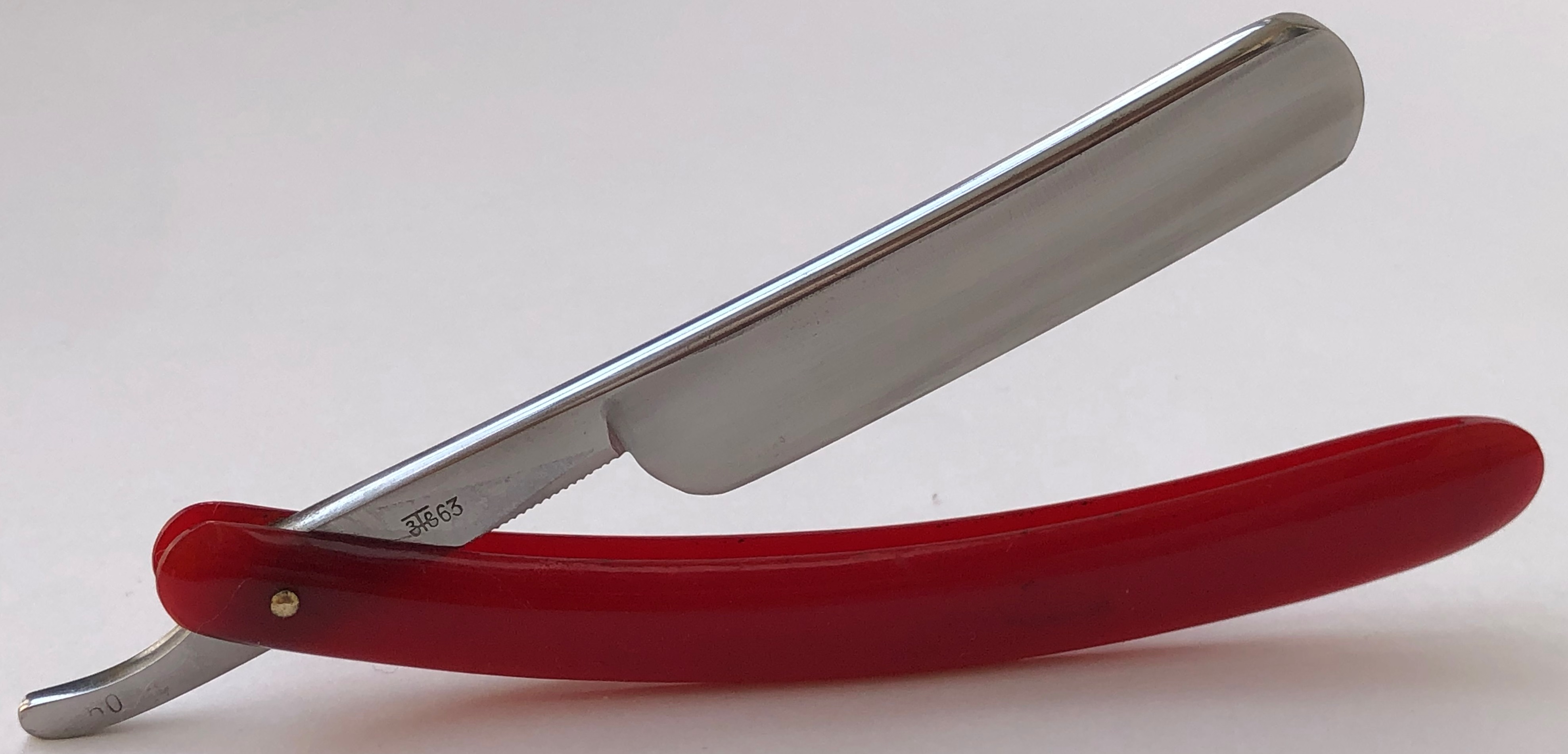 Бритва по своей форме клинка и размерам наиболее подходящая для новичка. Крупная и достаточно тяжёлая.Заточена и готова к бритью.