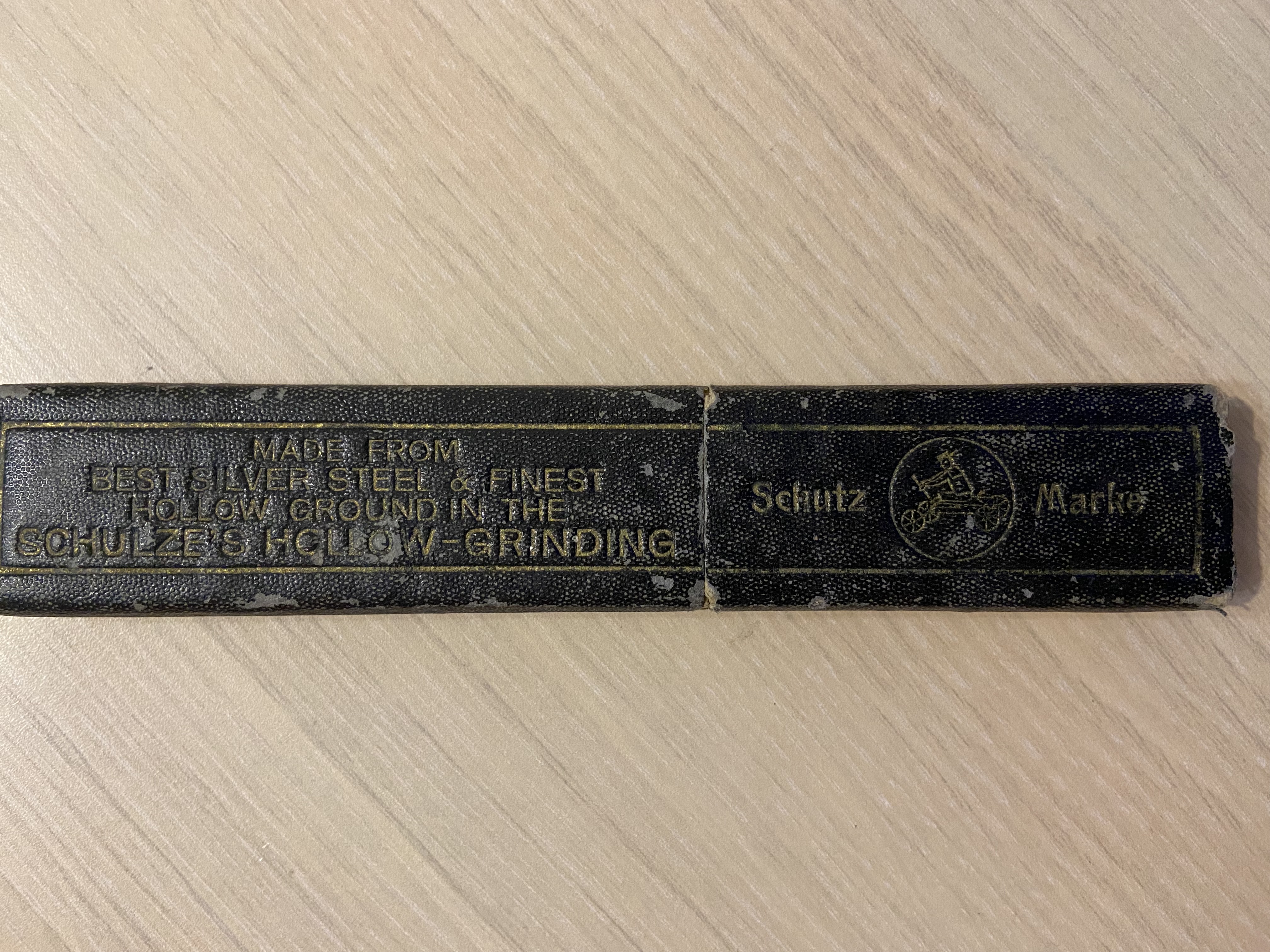 Немецкая бритва (Schutz Marke)На коробке написано "Изготовлено из лучшей серебряной стали и прекрасного холлоу граунда Шульцевского гринда".