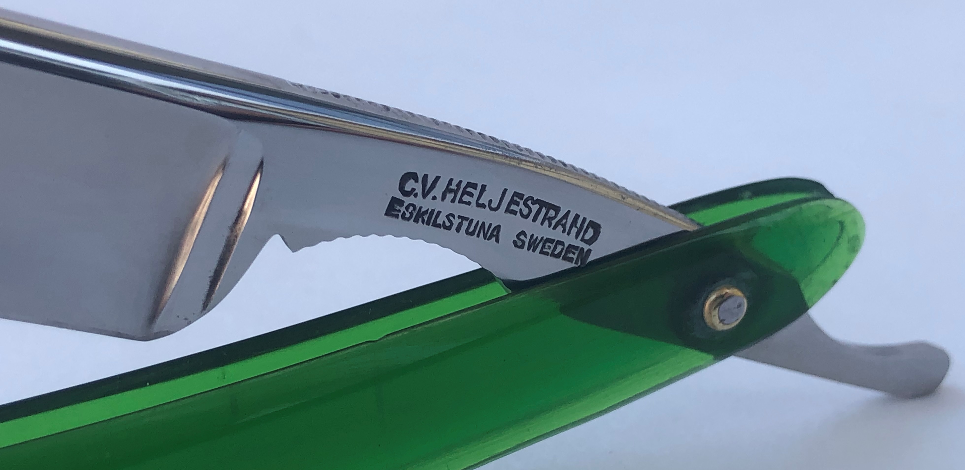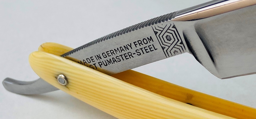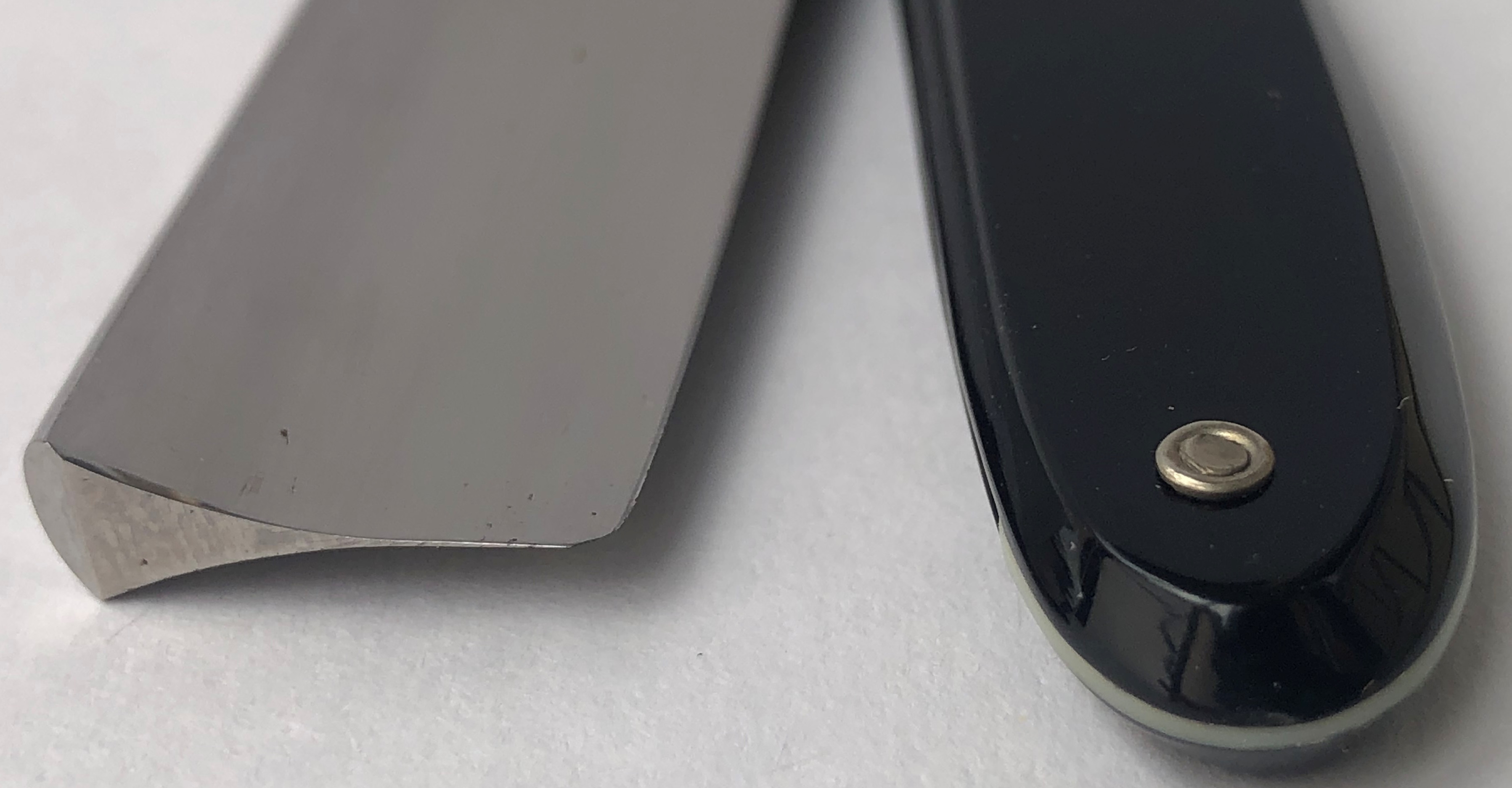Бритва хоть и была в пользовании,но находится в хорошем,рабочем состоянии. Немного откорректировал утОчку обушка с обратной стороны полотна,а лицевую только немного аккуратно почистил,где достал,чтобы не затронуть родное травление.Шлифовка и полировка клинка ближе в зеркальному,как и должно было бы быть для подобных бритв.Осевой пин был переустановлен заново,с добавлением внутренних шайб.Мощная,родная трёх-пиновая ручка находится в очень хорошем состоянии,без дефектов.Идеальная геометрия клинка:кромочка равномерна по всей длине. Как известно,тут присутствует достаточно твёрдая сталь,так что бритва прежде всего предназначена для барберов,либо для тех,у кого достаточно жёсткий волос. Сталь тут хоть и твёрдая,но всегда шла высококачественной,без исключений.