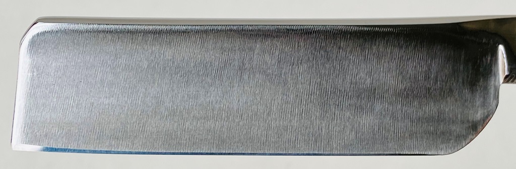 Бритва хоть и была в пользовании,но находится в хорошем,рабочем состоянии. Немного откорректировал утОчку обушка с обратной стороны полотна,а лицевую только немного аккуратно почистил,где достал,чтобы не затронуть родное травление.Шлифовка и полировка клинка ближе в зеркальному,как и должно было бы быть для подобных бритв.Осевой пин был переустановлен заново,с добавлением внутренних шайб.Мощная,родная трёх-пиновая ручка находится в очень хорошем состоянии,без дефектов.Идеальная геометрия клинка:кромочка равномерна по всей длине. Как известно,тут присутствует достаточно твёрдая сталь,так что бритва прежде всего предназначена для барберов,либо для тех,у кого достаточно жёсткий волос. Сталь тут хоть и твёрдая,но всегда шла высококачественной,без исключений.