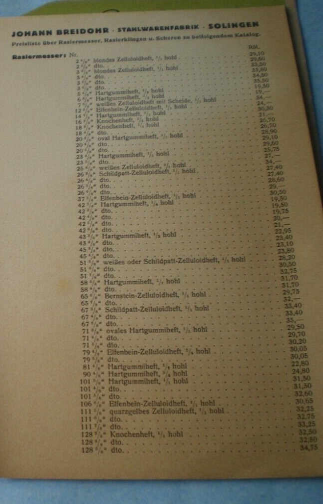 YOUTUBE Олег Бритва INSTAGRAM Олег Бритва Johann Breidohr, Rasiermesserfabrik, ЗолингенВ своё время коллеги механики окрестили, а 74 - год выпуска ), недавно с Вами в чате про познания ножевиков в бритвах выясняли ) Johann Breidohr, Rasiermesserfabrik, Золингеннашелся предвоенный каталог, точнее пара листов с бритвами от туда: