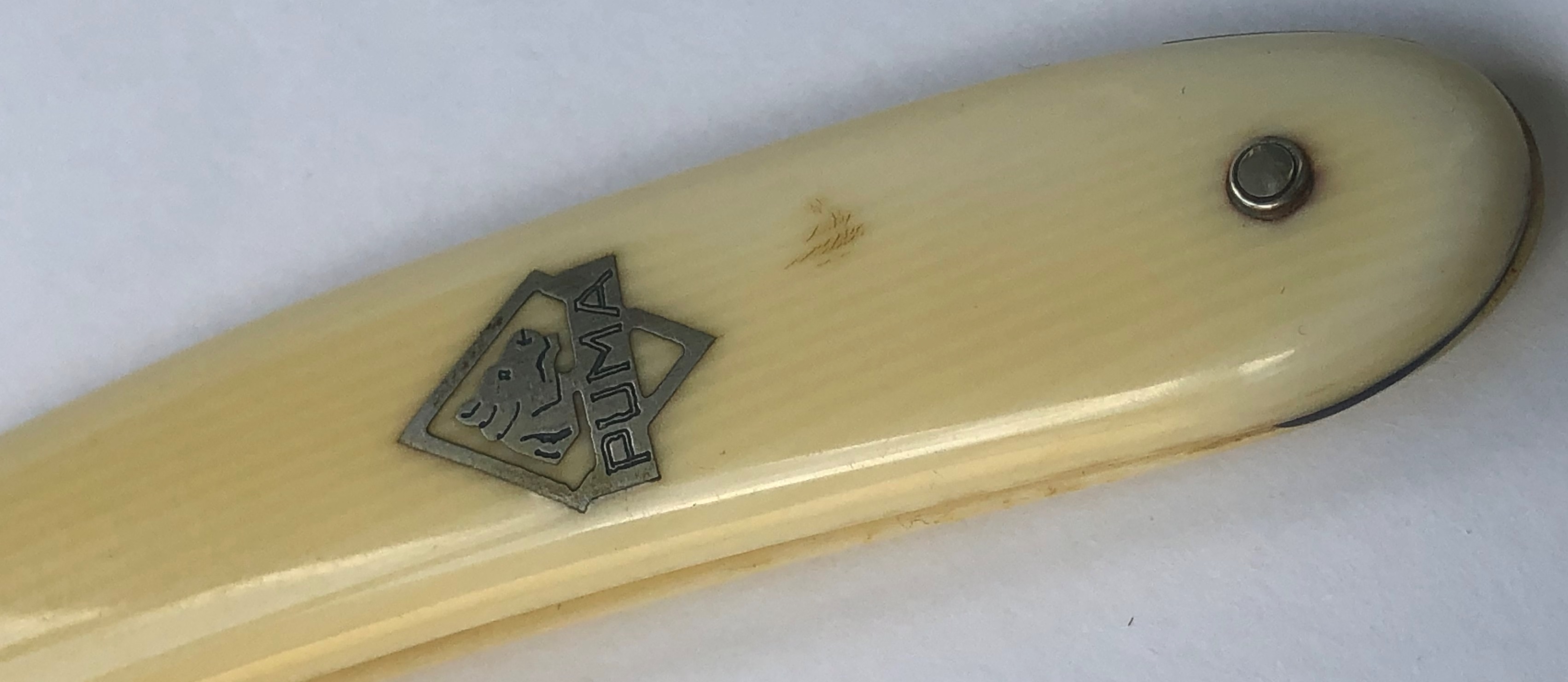 Интересная модель, при котором клинок совершенно никак не проштампован. Были эти бритвы и ранее, именно в таком виде.Ничего тут не разбиралось и не ремонтировалось. Только немного освежил полиролью былой блеск металла. Родные пины.Внизу оправы имеет место быть несколько трещинок,которые никак не повлияют на процесс брития в будущем.Кромочка равномерна по всей длине.Очень хорошая сталь, способна выдавать мягкое и чистое бритьё.