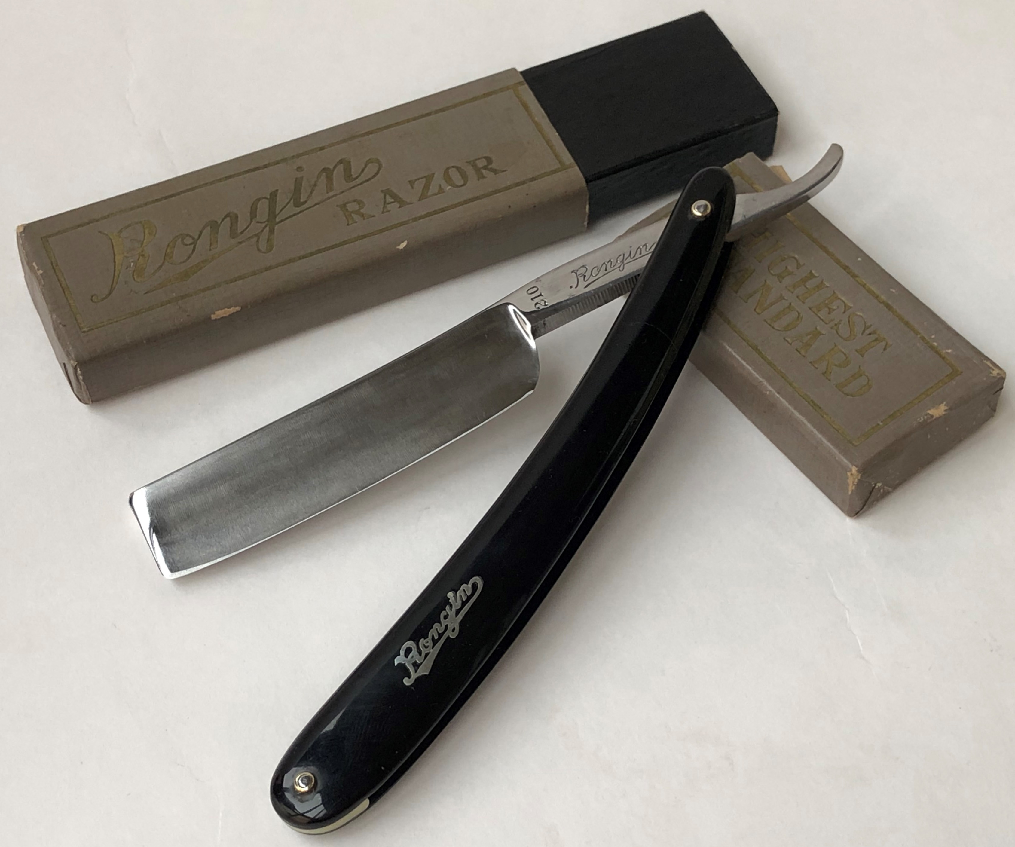 Бритва в пользовании не была, но требовала минимальных, косметических работ.Была разобрана-собрана,с освежением клинка до былого блеска и добавлением внутренних шайб.Попробовал повторить "заводской" гринд полотна.Кромочка равномерна по всей длине.
