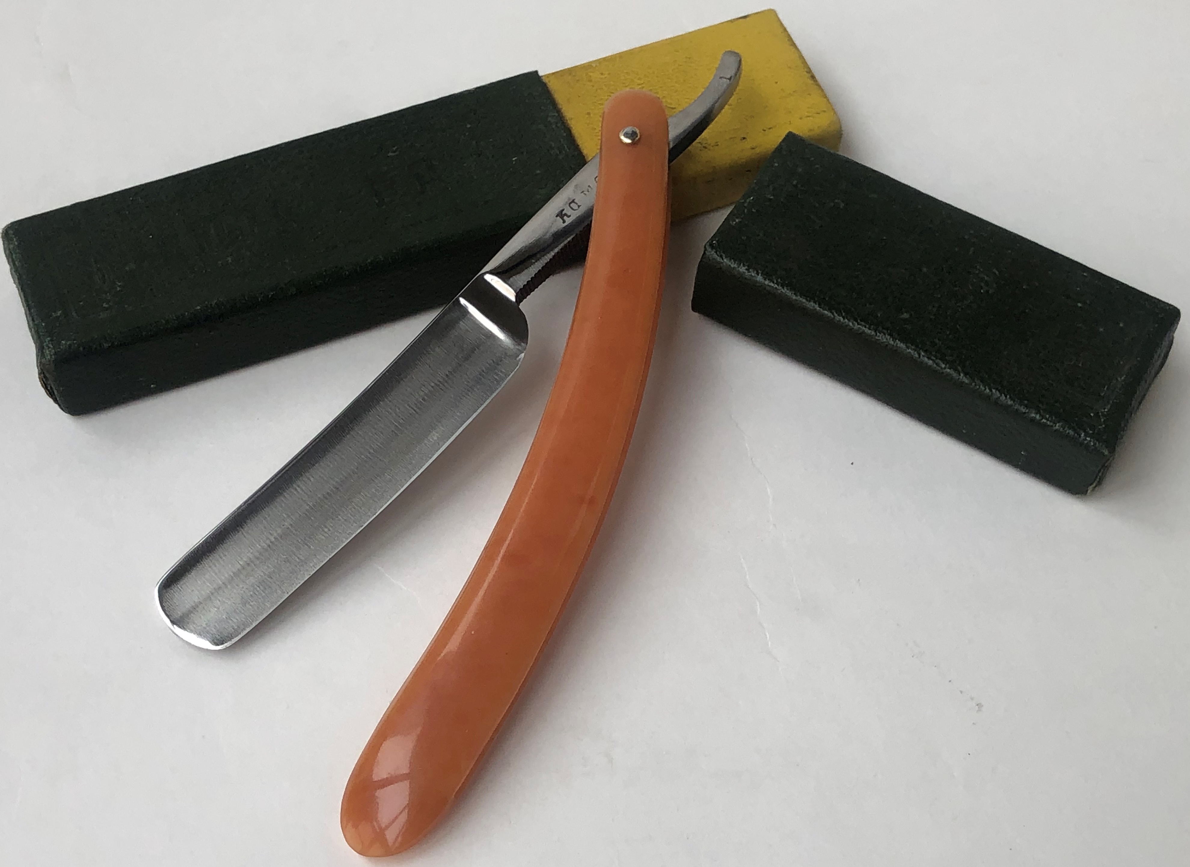 Бритва в очень хорошем и малопользованном состоянии. Никакого регринда, а только умеренная шлифовка и полировка.Идеальная геометрия полотна:кромочка равномерна по всей длине. Чистая сталь, без видимых дефектов. Эффектный, ажурный обушок.Крупная и удобная бритва для пользования.Не пропустите! Бритва заточена и готова к бритью.