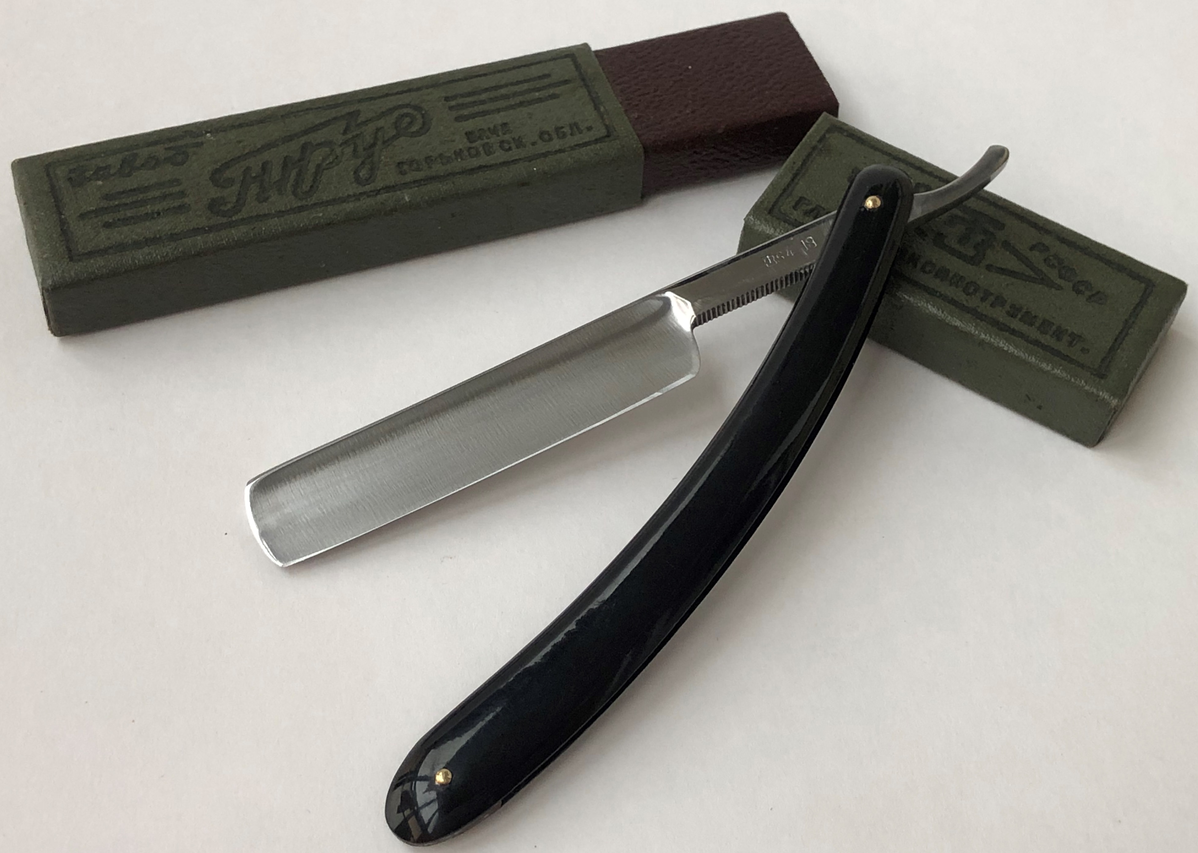 Ширина полотна-17.2 мм. Толщина обушка-4.3 мм. Полная вогнутость. Углеродистая сталь. Бритва в очень хорошем состоянии. Клинок немного освежен от старинной питины.(Небольшое пятнашко на лицевой стороне полотна не в счет).Идеальная геометрия клинка:кромочка равномерна по всей длине. Добавил внутренние шайбы и поставил двух-цветные втулки. Родная коробочка! Бритва заточена и готова к бритью. Отличный вариант для новичка и не только . Не пропустите недорогой и полностью готовый в бритью вариант. Цена-3850 р с доставкой.ПРОДАН Внимание! Важная информация! Spoiler Show