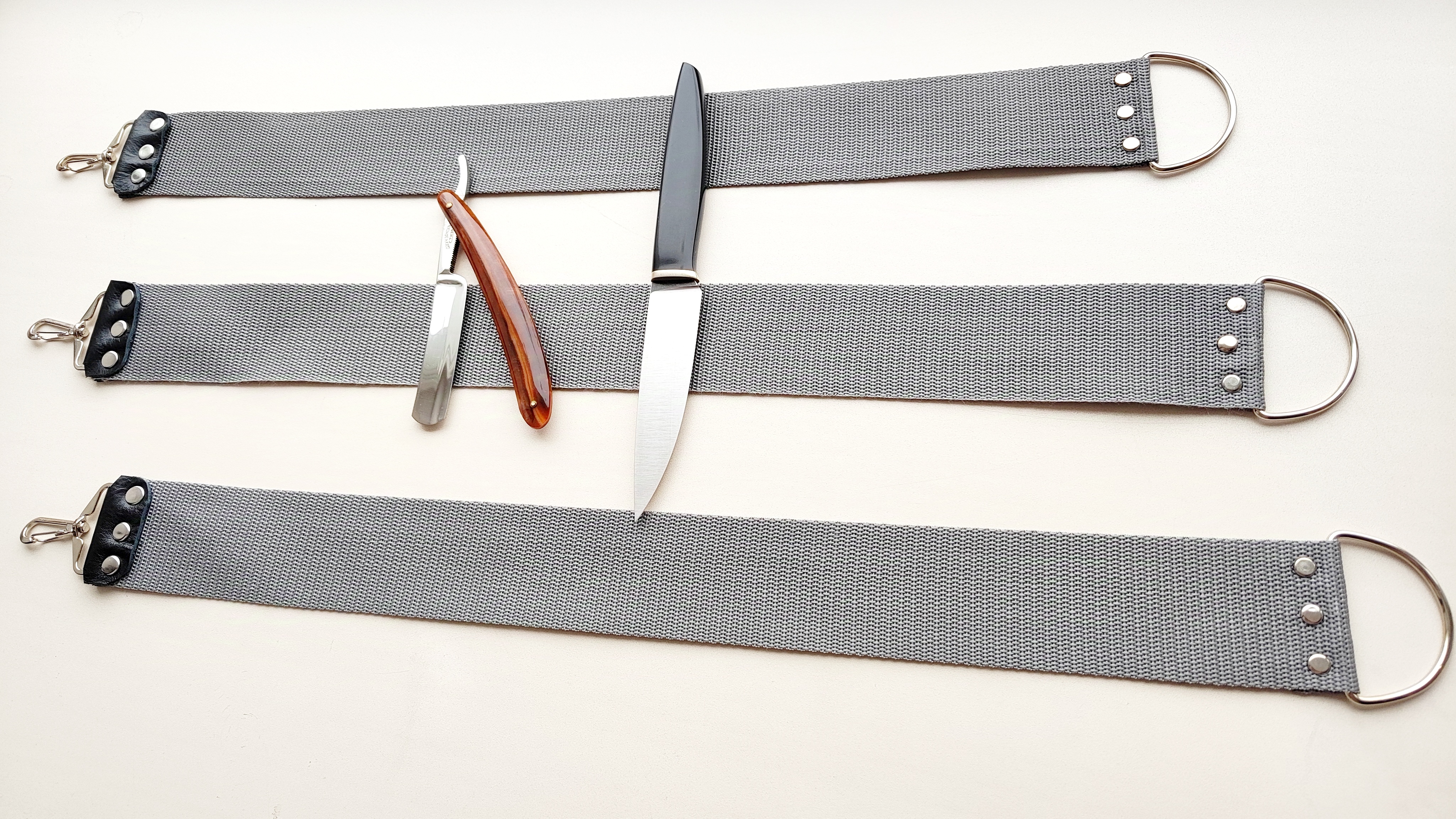 Синтетическая стропа для правки опасных бритв и ножей. Служит для предварительной правки, удаления чешуек/махры/микровлаги с кромки, а так же может использоваться для нанесения пасты или абразивного спрея/порошка для более агрессивной правки и подтачивания инструмента. Верхний крепежный элемент - натуральная кожа, нержавеющая фурнитура. Легко сворачивается в компактный рулон (на последнем фото). Все стропы новые - изготавливаю сам. Длина стропы - от 500 мм Ширина - 50 мм Толщина - 1.2 мм. Опасная бритва и нож с фото не продаются. Цена 800 руб. Есть варианты такой же стропы, но прицепленной к ремню из кожи шириной 51 мм. Возможно изготовление нестандартной длины. Пишите, согласуем. Spoiler Show