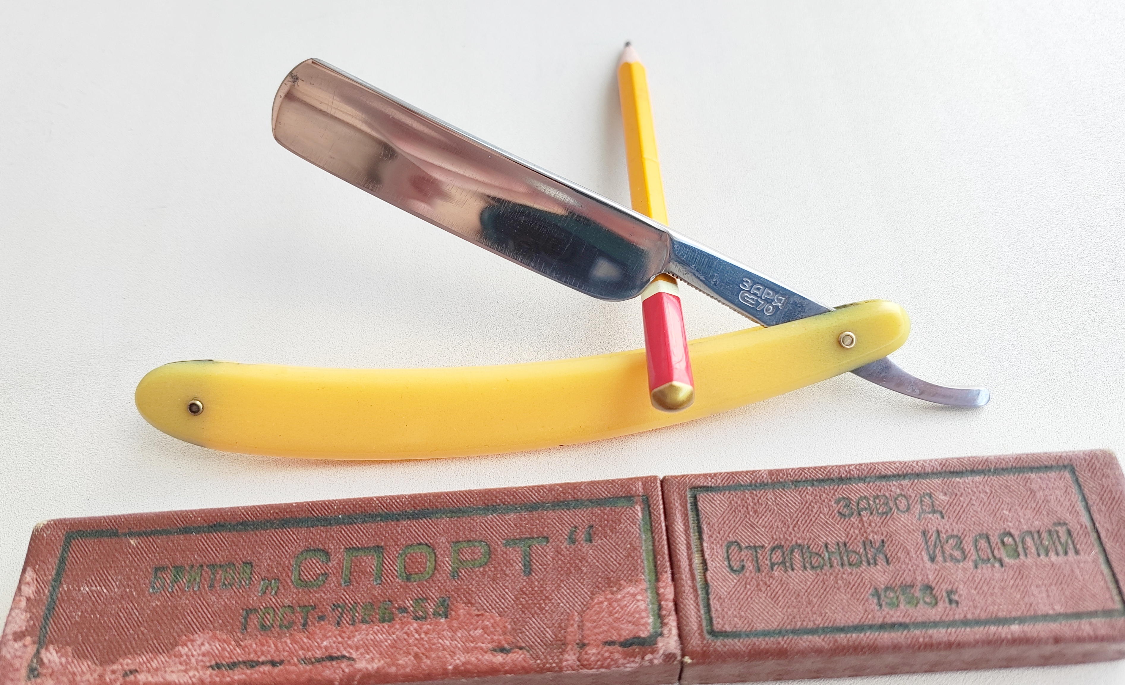 Опасная бритва Яхта, завод ЗТВ (Вача), 1962 год. Ширина полотна 17.5 мм, все родное, футляр тоже. Полотно бритвы вручную почистил и заточил. Подготовлена мной к бритью. Приятный экземпляр с передового завода Труд Вача, здесь использована сталь высокой твердости, бреет хорошо и кромку держит отлично. В советские годы ЗТВ Яхта была одна из наиболее почитаемых серийных моделей, речная серия, в которую ещё входят Волга, Ока и Кама. Цена 4640 руб. К бритве рекомендую приобрести ремень для правки опасных бритв моего изготовления из итальянской кожи (подробнее на странице 17, объявления: 261, 262, 264, 265). Spoiler Show