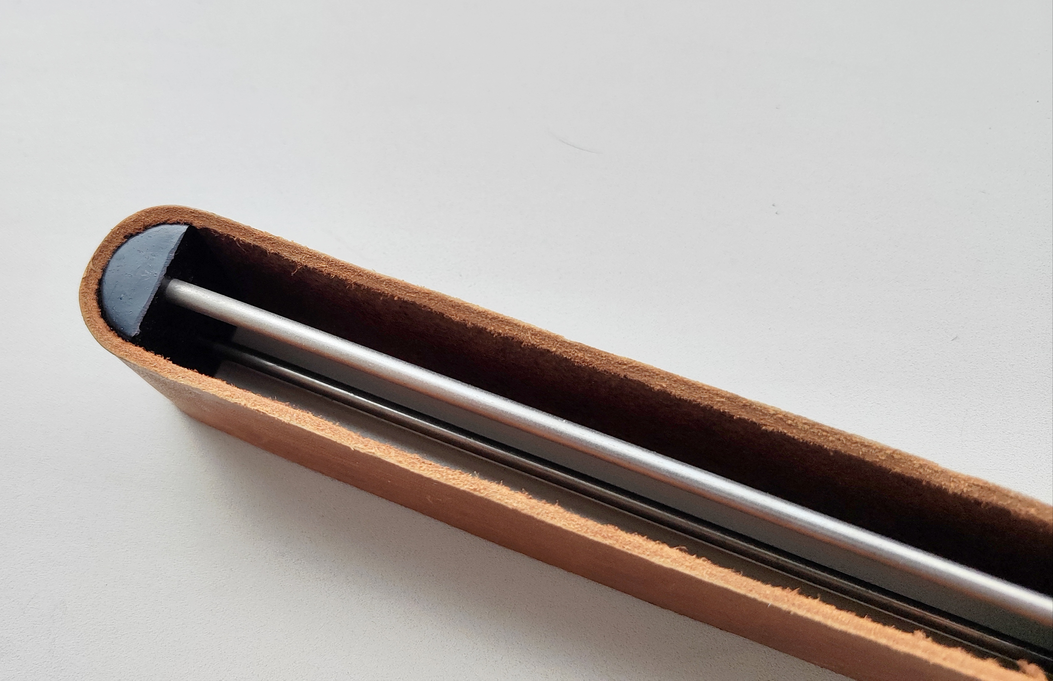 Ремень для правки опасных бритв, широкий, 63 мм, итальянская кожа КРС растительного дубления (чепрак). На ощупь ладонью ощущается очень мелкий и бархатный микроворс - под быструю и эффективную правку бритв любой твёрдости, как раз он и правит кромку. На данном экземпляре есть тёмный участок и прожилка сбоку, отразил на последних фото. На работу это не влияет, только внешний вид. Со временем ремень приработается, потемнеет и их будет видно меньше. В связи с этим, цена снижена. Ремень подготовлен к правке, поверхность прокатана и отшлифована до Р2500. Это "растишка", она не подвергалась хим. дублению и окрашиванию, поэтому могут быть участки, отличающиеся по цвету, на правку это не повлияет. Нержавеющая фурнитура, удерживающие элементы из натуральной кожи, все ремни новые, изготавливаю сам. Длина ремня - 530 мм Ширина - 63 мм Толщина кожи - 3.2 мм. Инструкцию по использованию и хранению ремня вышлю, опасная бритва с фото не продаётся. Цена 2870 руб. Spoiler Show