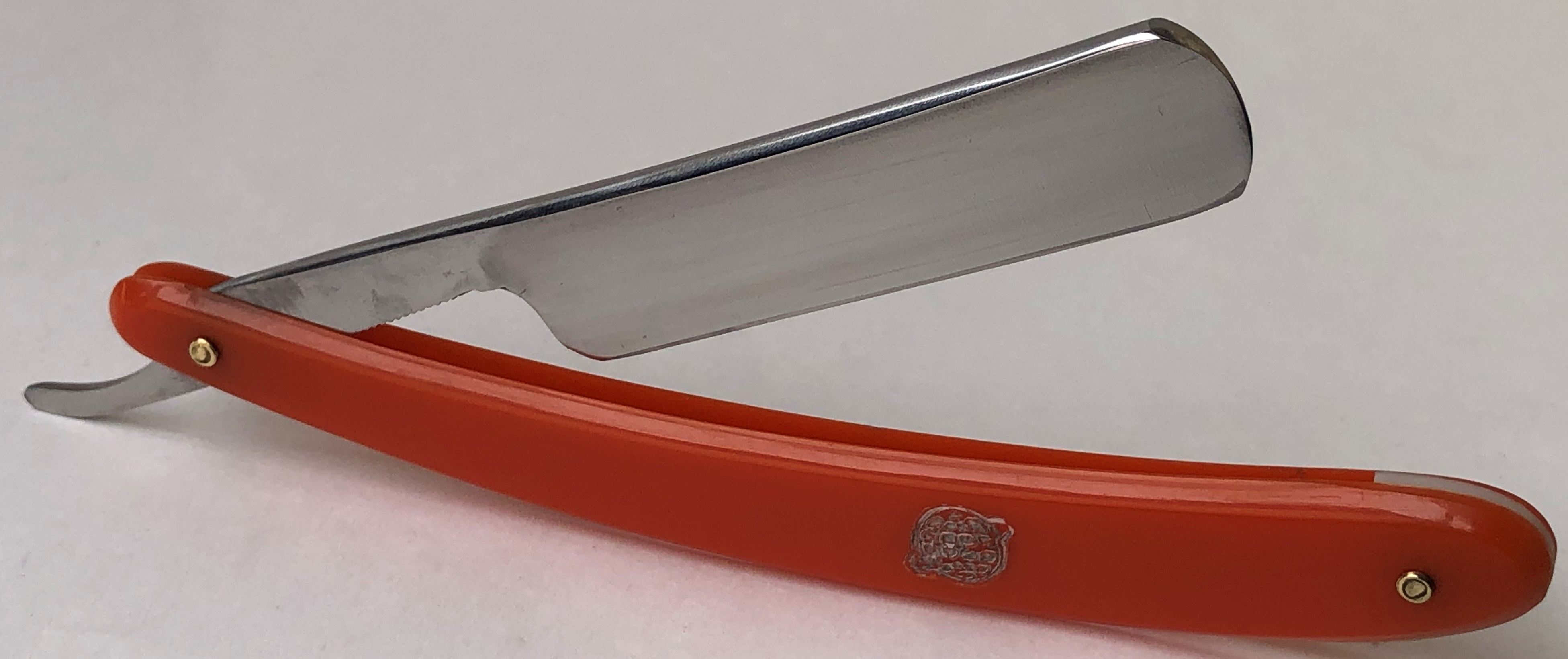 Скорее всего бритва немецкая,но установленная роговая оправа и родные пины мне напомнили классических англичан 19-го века. Поэтому на 100% точно тут сказать не могу.
