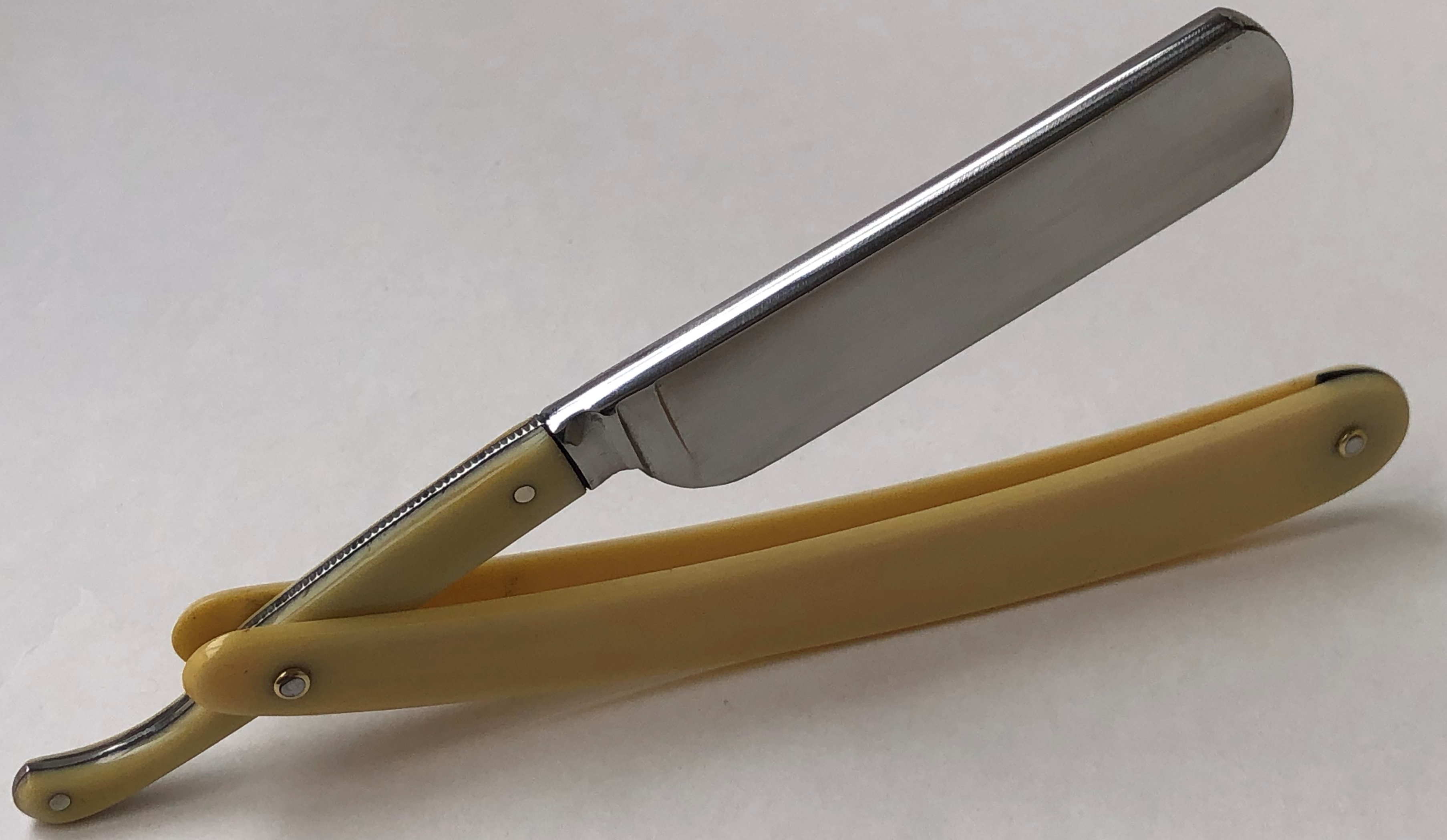 Стал и кромка чистые от разного рода видимых дефектов.Бритва заточена и лично протестирована. Отличное чистое и мягкое бритьё. Очень удобная форма лезвия и размер не только для новичка, но и отлично подойдёт для опытного пользователя. Прекрасный, старинный вариант в свою коллекцию, так что не пропустите 100-летнюю старушку!