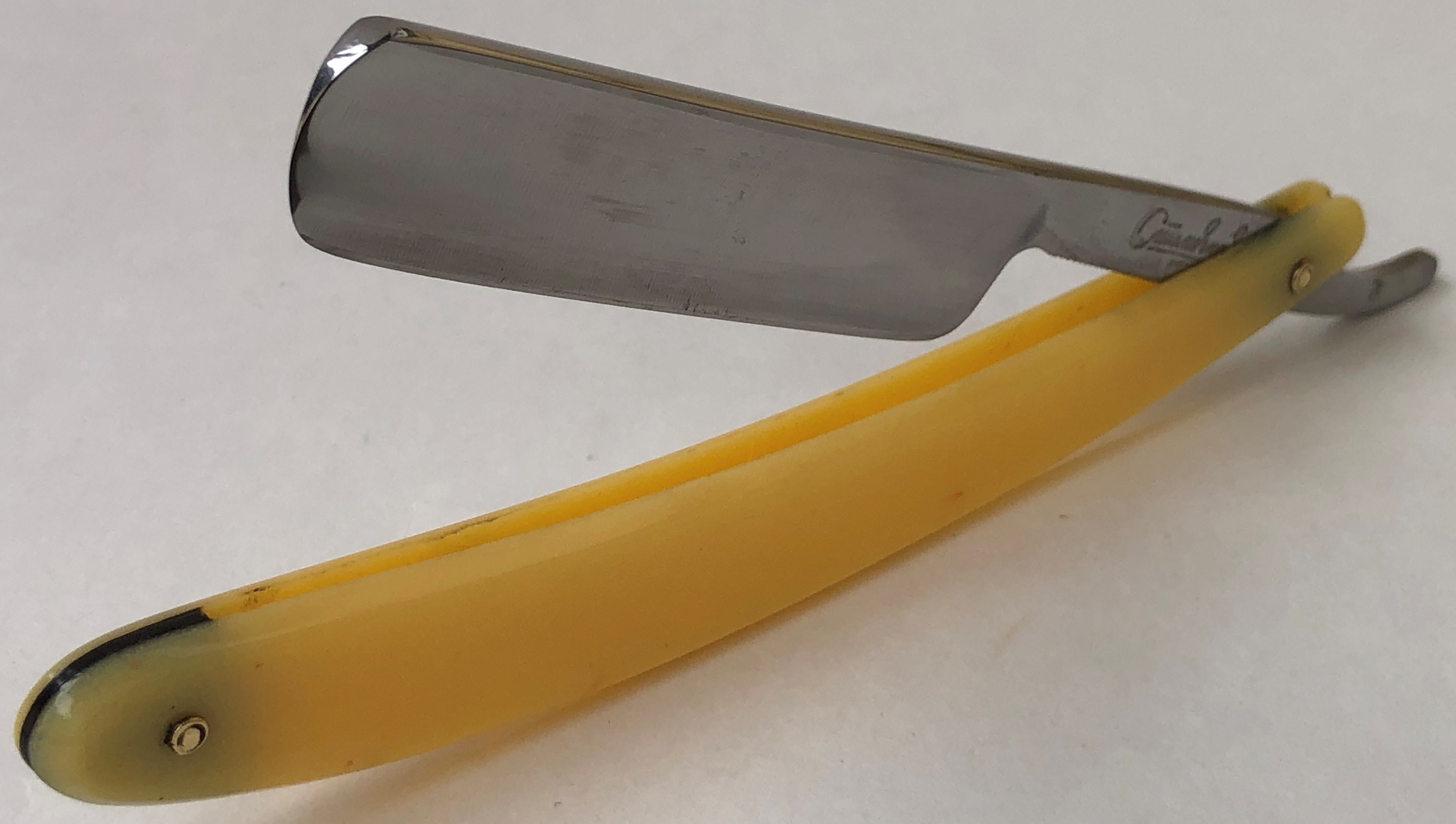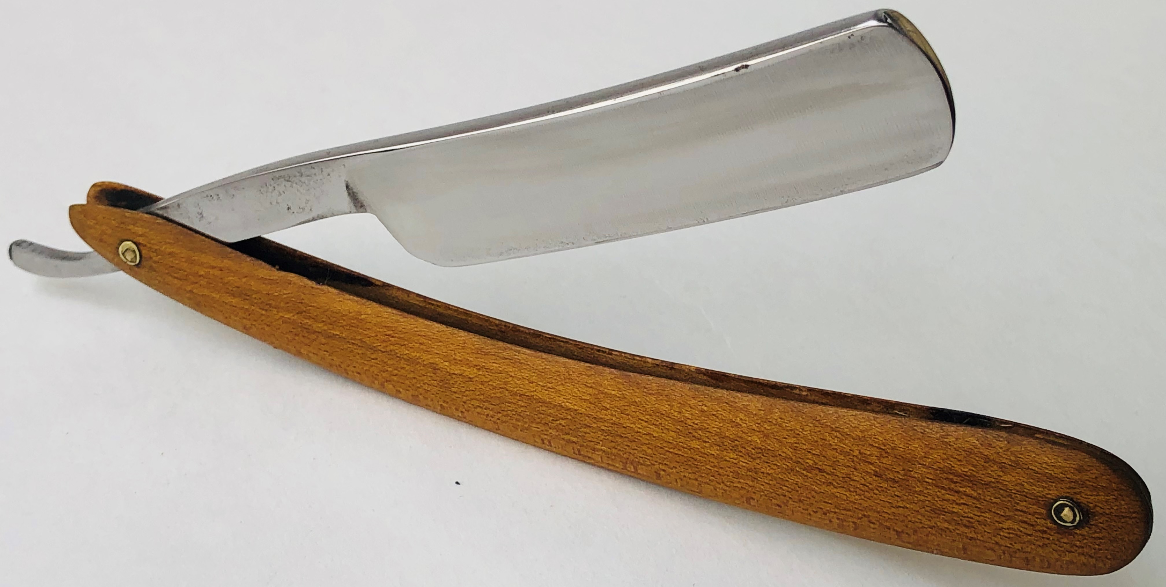 Скорее всего бритва немецкая,но установленная роговая оправа и родные пины мне напомнили классических англичан 19-го века. Поэтому на 100% точно тут сказать не могу.