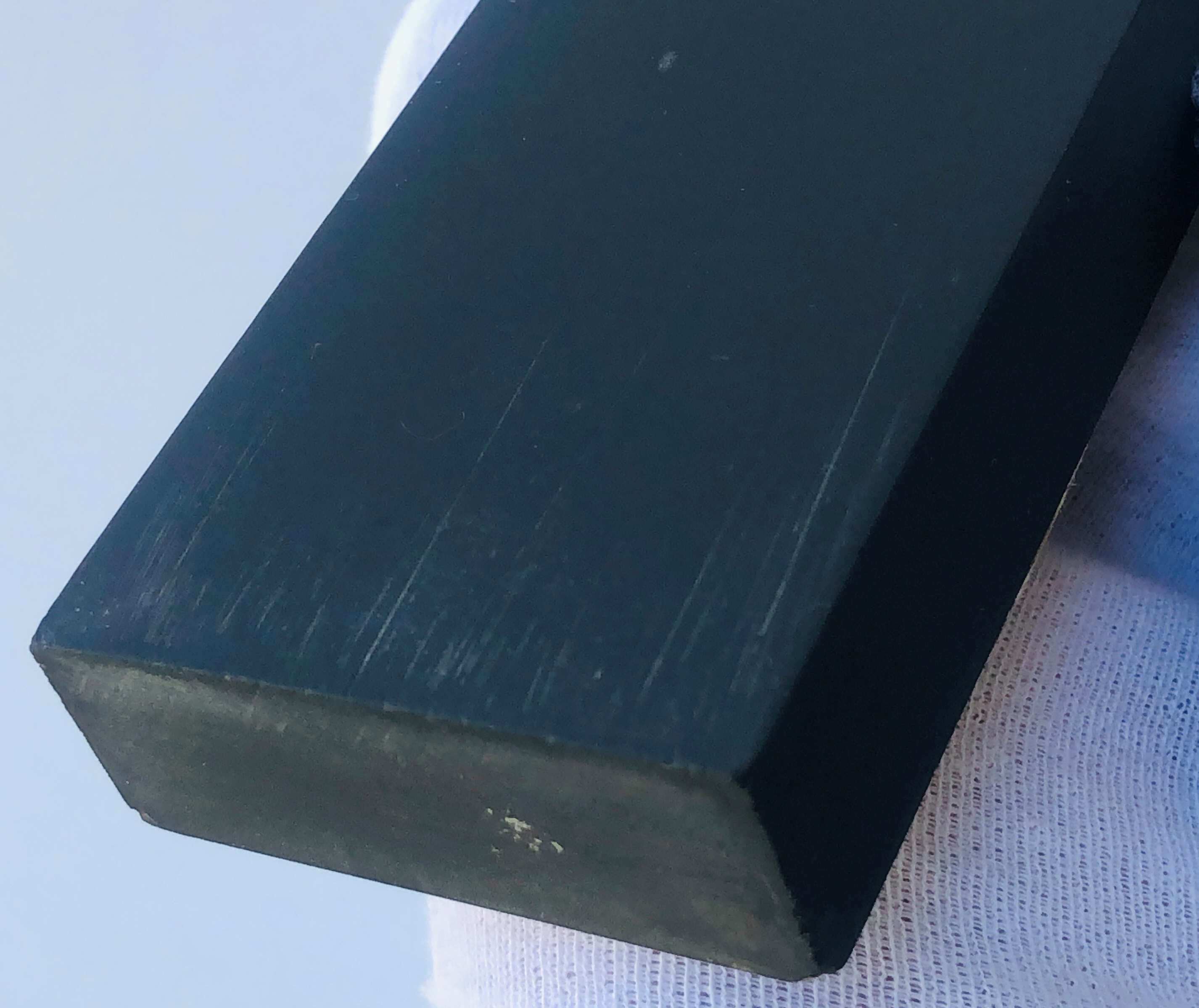 Тут можно сделать две вещи:либо все оставить как есть,при работе просто " не заступая" за границы пятна,благо размеры позволяют, либо распилить его на части, примерно 6 см от стороны пятна и получить обычный финишный наладонник, примерно стандартного размера. А оставшуюся часть камня использовать в качестве томо-нагуры, либо для чистки синтетиков от засаливания.
