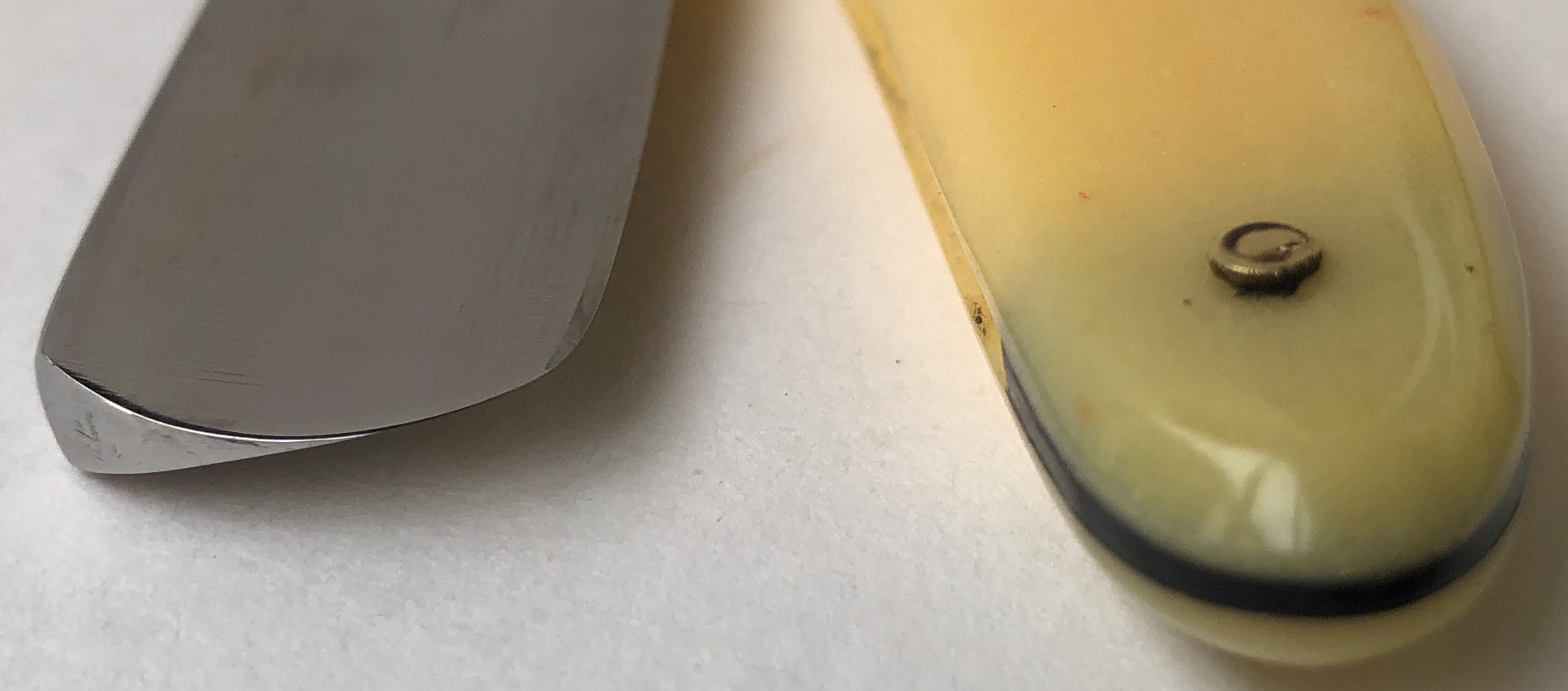 Что то осталось, но уже не критично.Родная костяная оправа находится в идеальном состоянии. Родные пины была демонтированы и заново установлены, так что сейчас бритва полностью оригинальная. Красивая и редкая бритва в коллекцию.