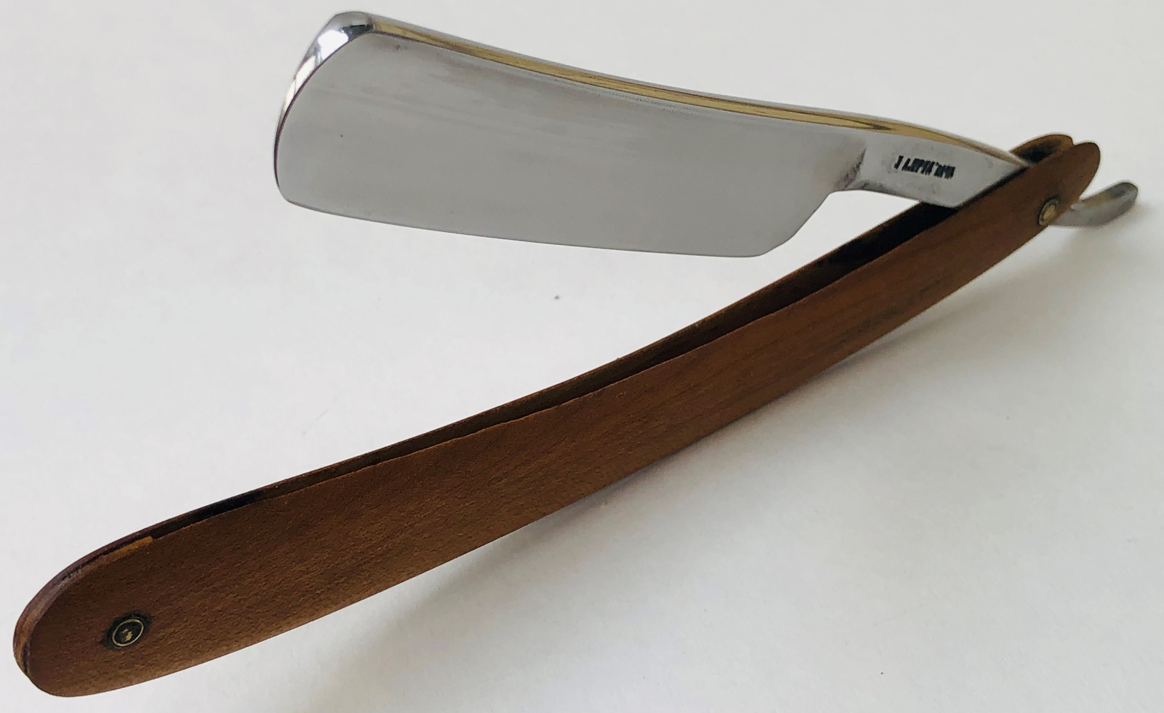Скорее всего бритва немецкая,но установленная роговая оправа и родные пины мне напомнили классических англичан 19-го века. Поэтому на 100% точно тут сказать не могу.
