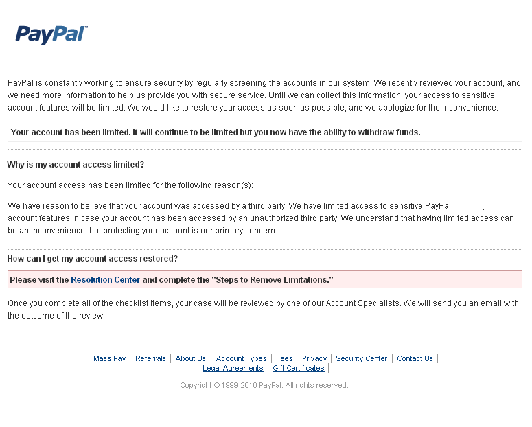 ryrelav писал(а):Некогда недодайте никакой информации если получите такого плана письмо от якобы от Pay Pal