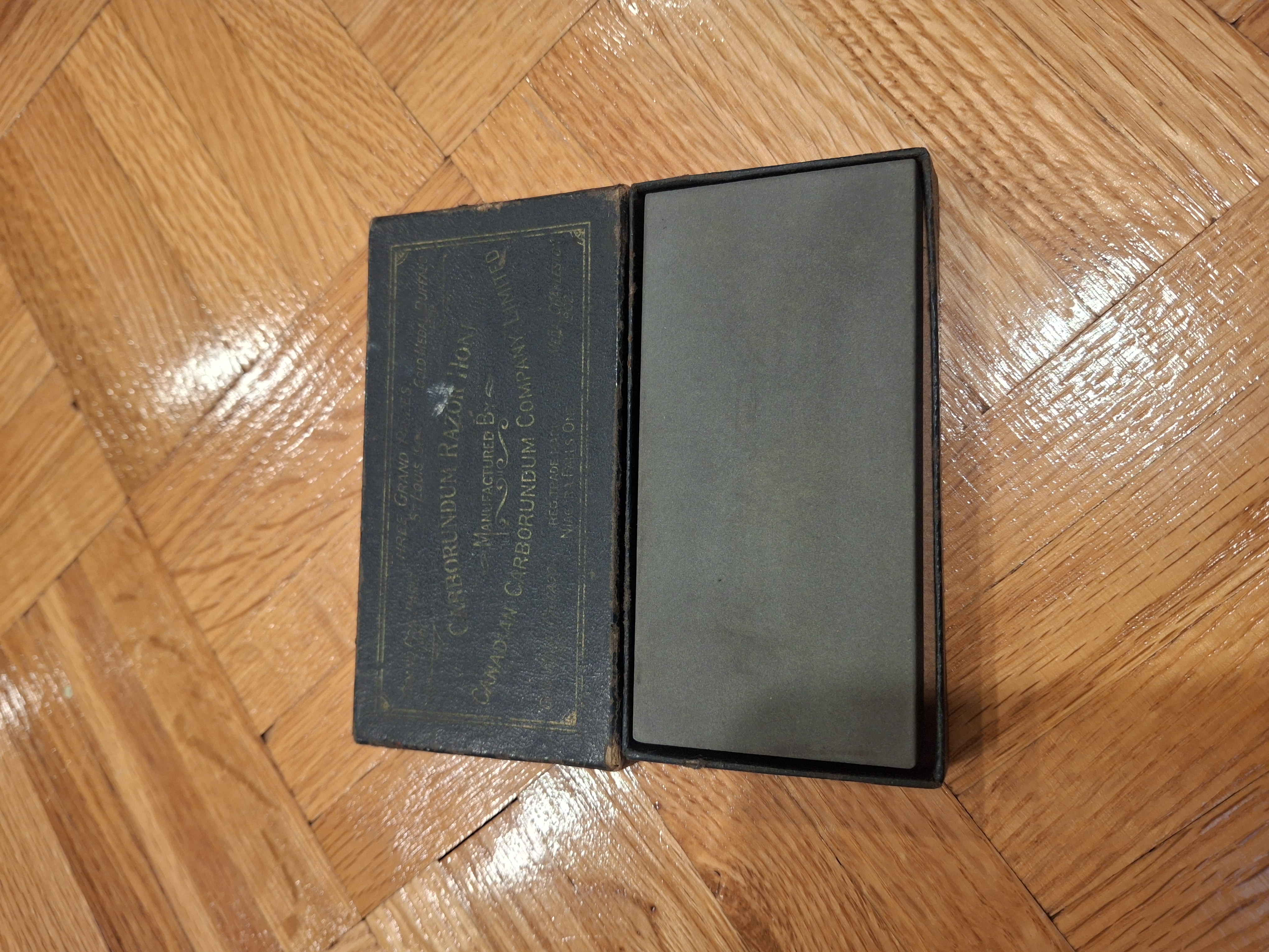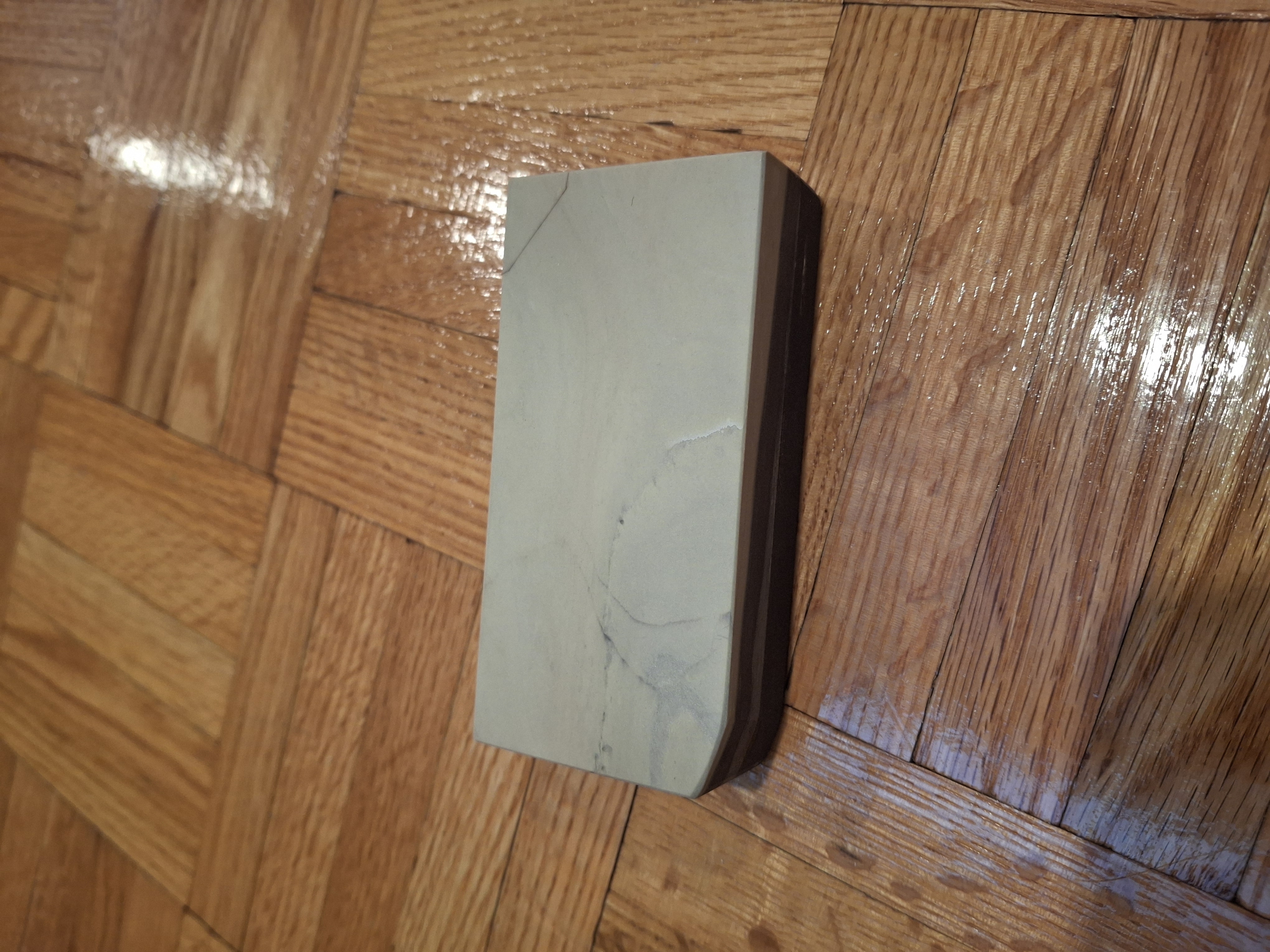 А это из последнего набега. Попорядку- там о шантер 8 дюймовый(не выдержал выколупал из короба в машине) был замаслен так, что понять что это было нереально. Второй- оказался карборундум, но очень тонкий. Третий, когда отмылся, оказался хиндостаном. Четвертый- вашита от смитов. Сейчас смиты такие камни называют хард Арканзас. Есть с чем сравнить. И последний, который в коробе ребром стоял- Лили вайт вашита с остатками родной этикетки.