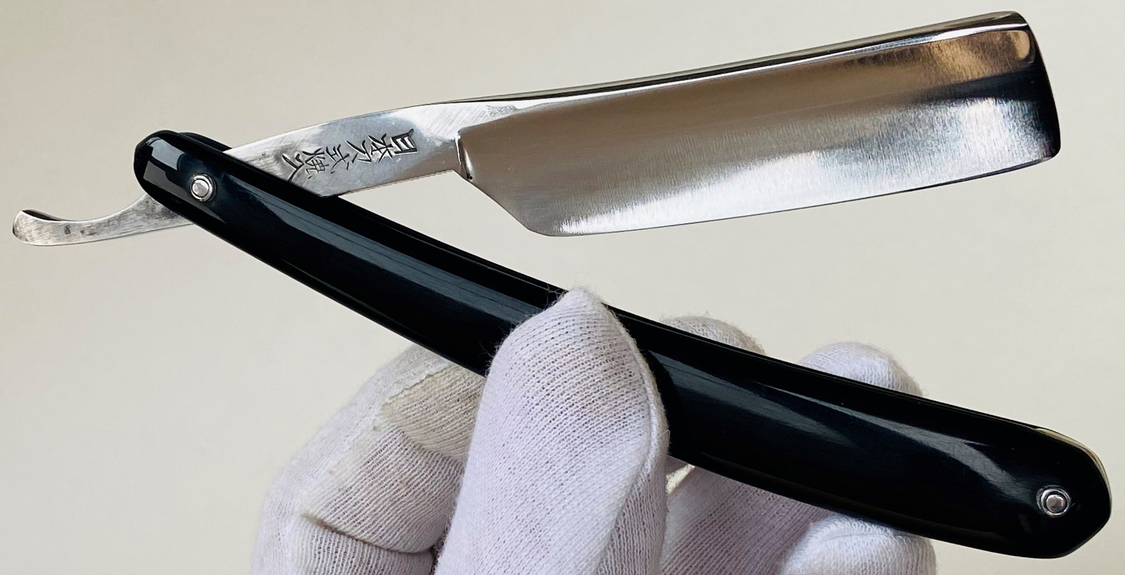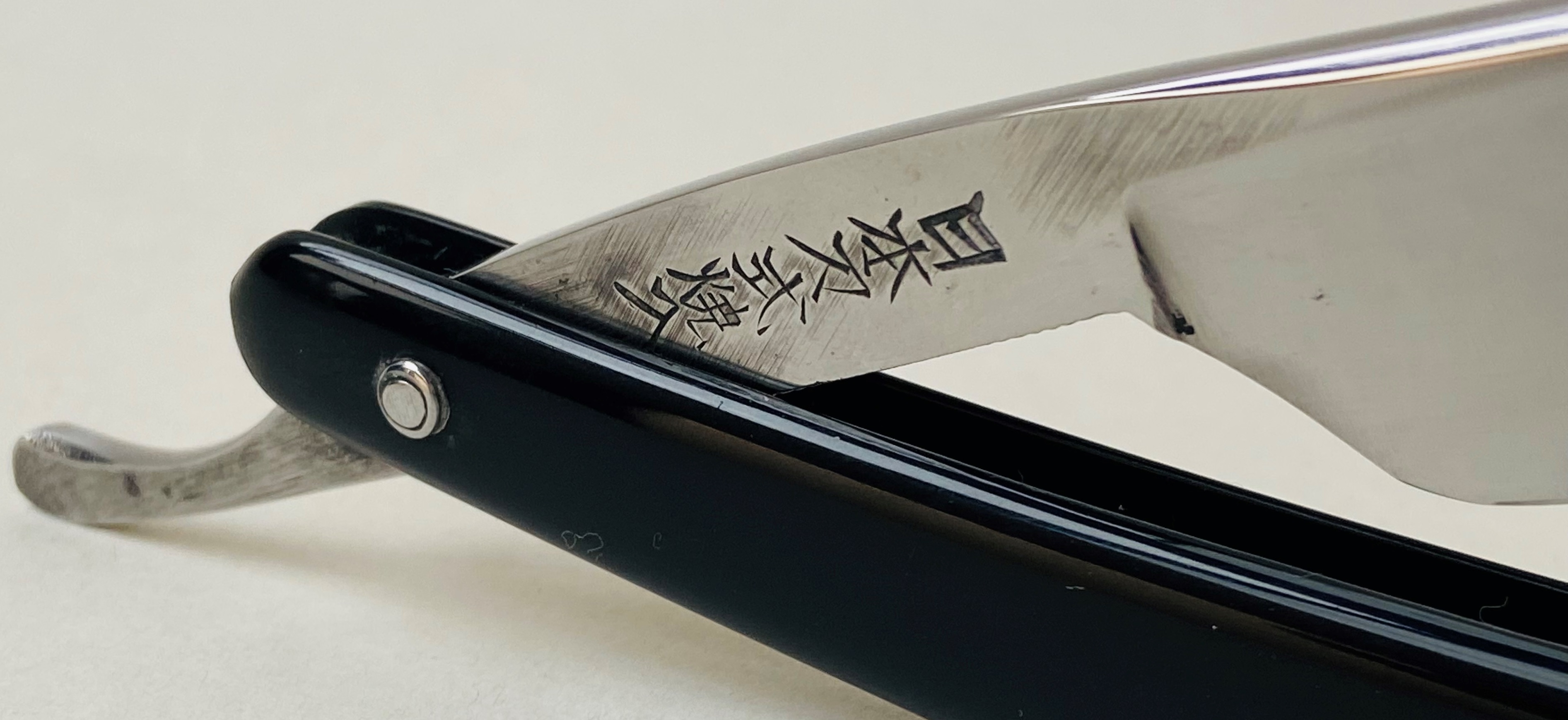 Бритва из старой японской парикмахерской. Специально, по "барберски"скошена немного пятка,чтобы не точить лишний метал в месте,которое не принимает участия в процессе брития.