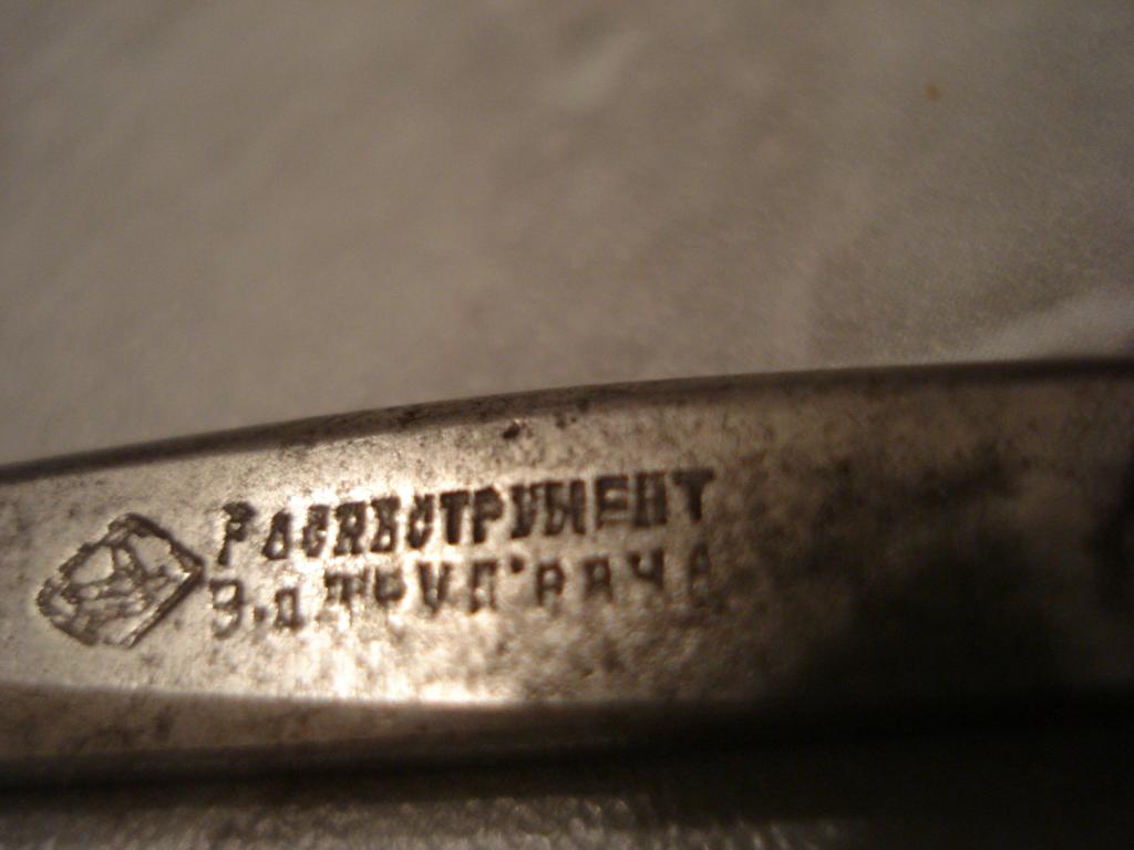 По З-д.ТРУД Вача здесь http://www.britva.ru/forum/viewtopic.php?p=15693#p15693" onclick="window.open(this.href);return false;, такое ощущения что бритвы с клеймом З-д.ТРУД Вача без года, производились во время Росинструмента, форма полотна таже один в один. После ВОВ клейма Росинструментна бритвах не прослеживается, меняется немного и форма бритвы (характерные ребра на эрле), появляется год выпуска, фото в следущем посте.