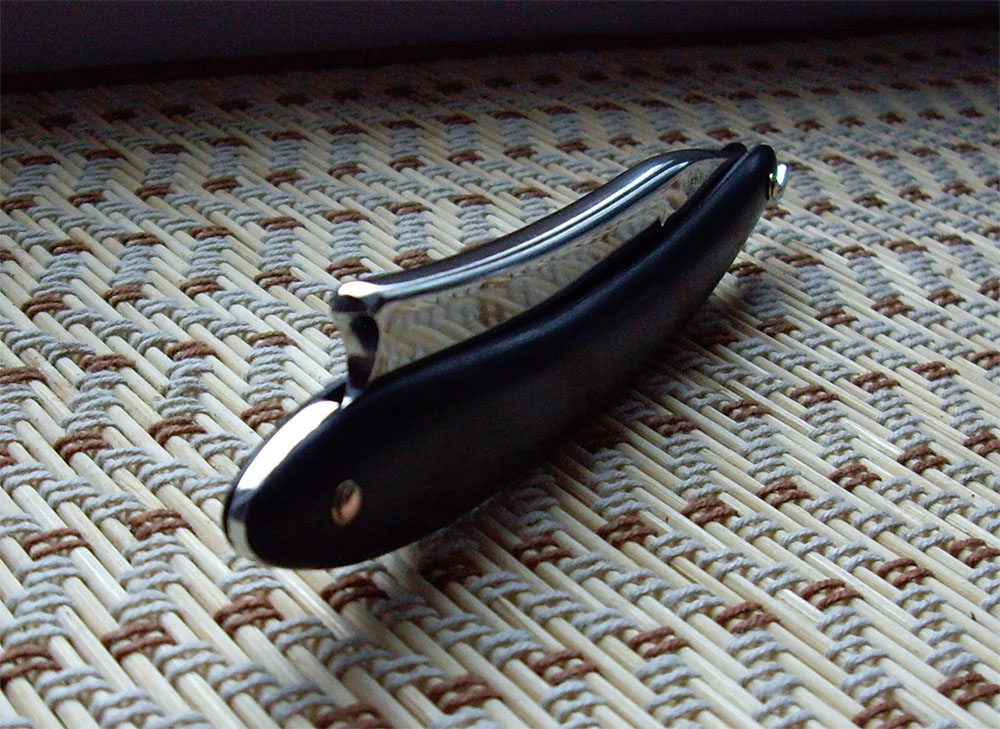 Добавлено спустя 1 минуту 50 секунд: Ну стиль то я не менял, просто рог пришлось на эбонит заменить. Челябинские мужики настолько суровы, что правят бритву не на ремне, а на роже.
