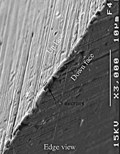 Re: О микроскопахBeaJee, ну смотря что считать тупой бритвой. Например после 6000 камня видно что на кромке явные риски(соответствующая зернистость) и сама кромка неровная. После пасты с ГОИ (самой финишной из тех которая была) на кромке (щас присмотрелся, сразу не заметил) в некоторых местах есть риски а в некоторых(почти половине) все гладко(поверхность кромки гладкая), и сама линия кромки выглядит как прямая, то есть изъянов практически нет. После довольно интенсивного бритья без правки, не только на лице опять пихал её под микроскоп - картина осталась прежней - никаких "видимых задиров" кромки. Короче это уже за гранью видимости).