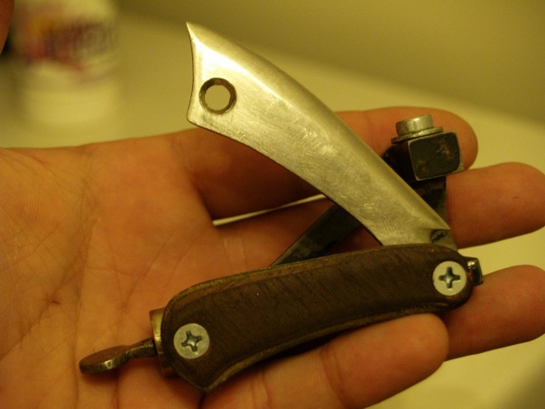 Re: Что это?Мне Тоже кажется что нож из текстильной промышленности. типа обрезного ножа оверлока... но там ножи работают по принципу ножниц, и форма , и углы заточки у них другие. С другой стоны на полотне присутствует явный ниткообрезатель (или вспарыватель).