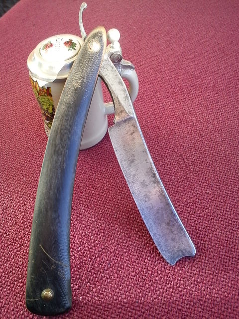 Состояние-плакать хочеться.. Ручка конечно не родная. А бритва изготовлена в период с1837 по 1901.