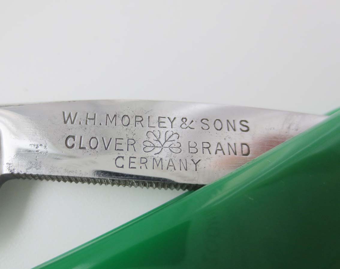 manah: Досталась мне вот такая приятная бритвочка - "W.H. Morley&Sons", Clover(Клевер) Brand, Germany. Лезвие 6/8. Компания существовала с 1913 - 1927 гг.