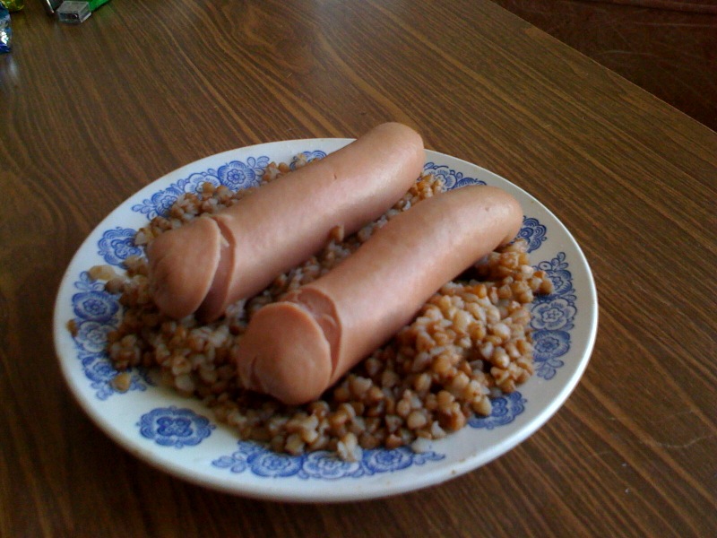 Re: Анекдоты и приколы не в тему:)Сосиски с гречкой. Традиционное русское блюдо от нашего правительства.