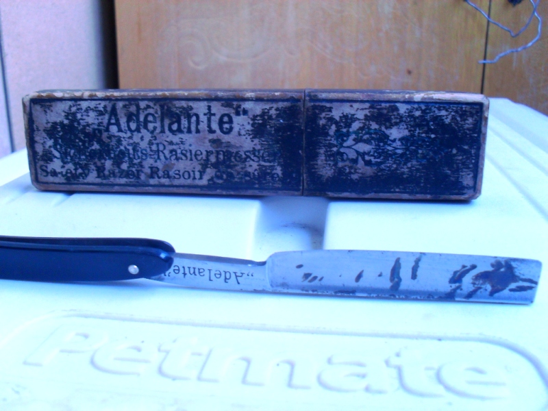 Подарили опасную бритву. Со слов товарищей бритва немецкая эпохи ВОВ. На коробке мелким шрифтом написан длинный текст на немецком языке и большим шрифтом надпись "Adelante". Такая же надпись "Adelante" присутствует на шейке бритвы. Вопрос: правда ли это немецкая бритва, и если да то кто её производил? В интернете роюсь второй день не могу ничего подобного найти, помогите пожалуйста.