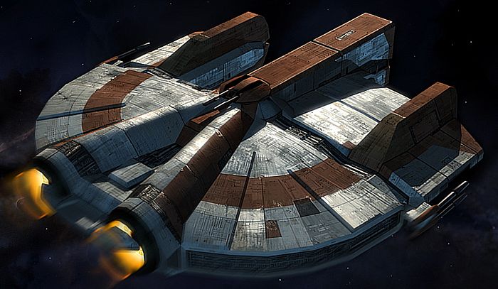 Два двигателя работают по принципу кавитирующих торпед. То есть корабль движется на касаясь воды. Каждый двигатель находится в воздушной капсуле, что позволяет развивать гораздо большую скорость и маневренность.