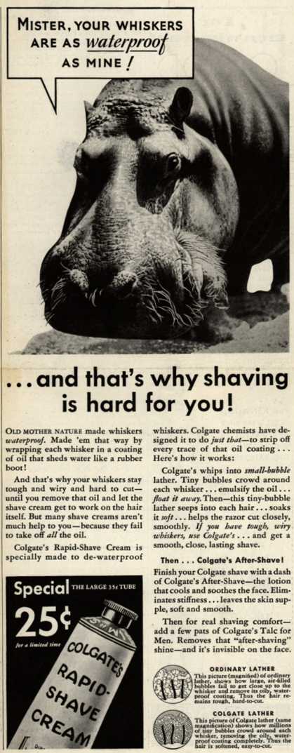 Re: Как это было... (Реклама)Надо же, Colgate, оказывается, мыло для бритья производил... Даже не знал. что эта компания столь долгую историю имеет.