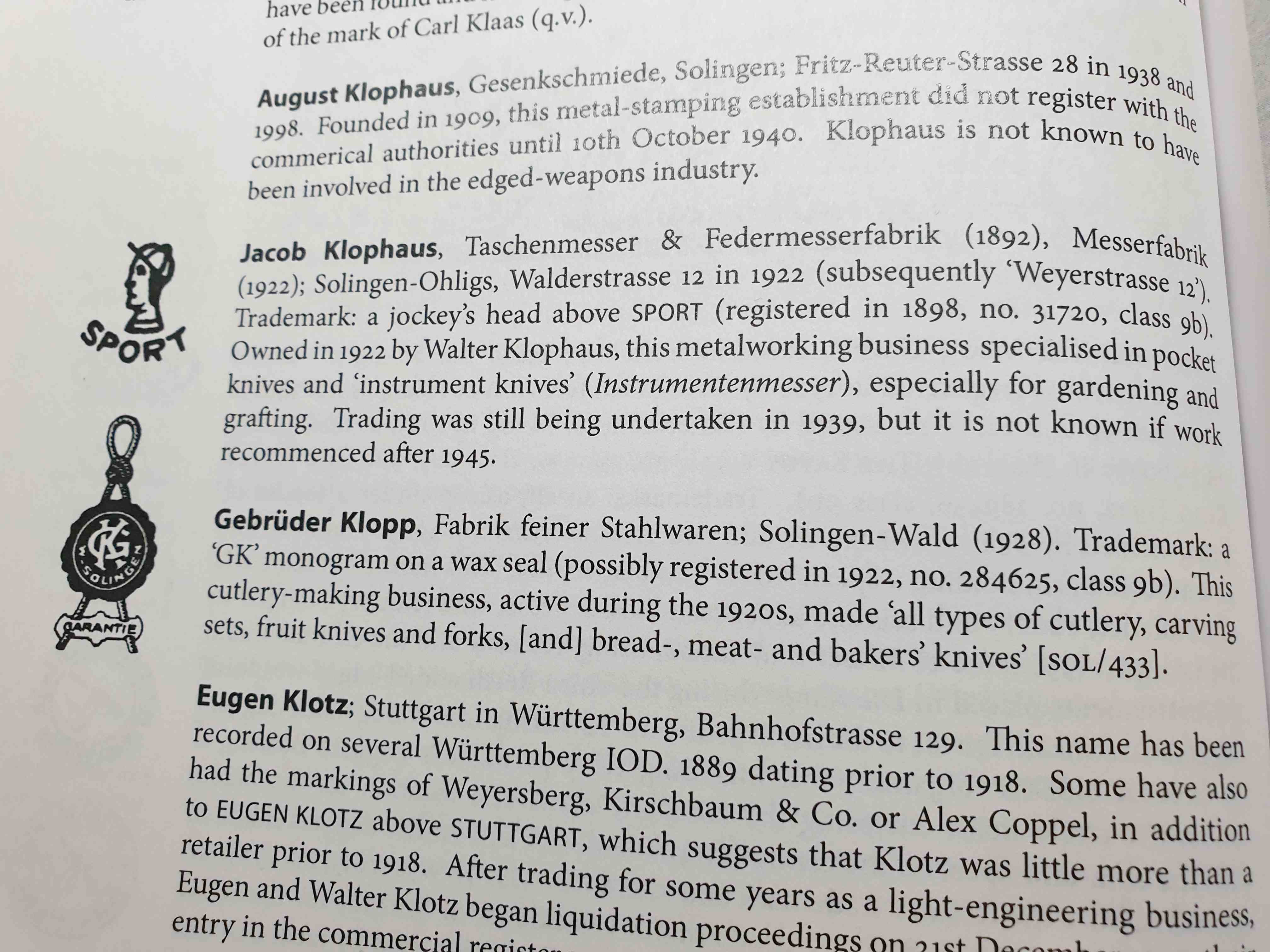 Re: ERNST KLOPP SOLINGENЕсть упоминание о фирме Gebrüder Klopp, Fabrik feiner Stahlwaren, Solingen-Wald.