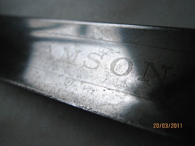 Неплохой, видимо, экземпляр для коллекции. Название близко к кромке, затачивать лишний раз... Хотя внимательность и осторожность решает многое в нашем деле :)