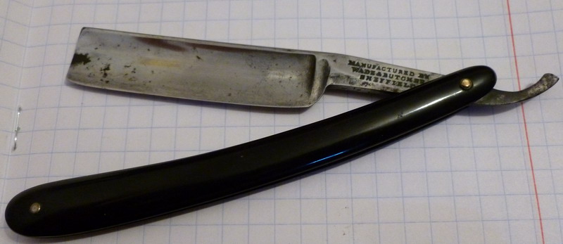 Одна бритва была куплена в кучке а в кучке много штучек. Ну бритва и бритва - по сути безымянная. Видать либо штамп плохо пробили либо сошлифовали много. Но при сильном всматривании видно окнчание штампа Батчера - стрела, мальтийский керст и надпись шеффилд. Видать отсутствие яркого штампа уберегло ее от бурной жизни.