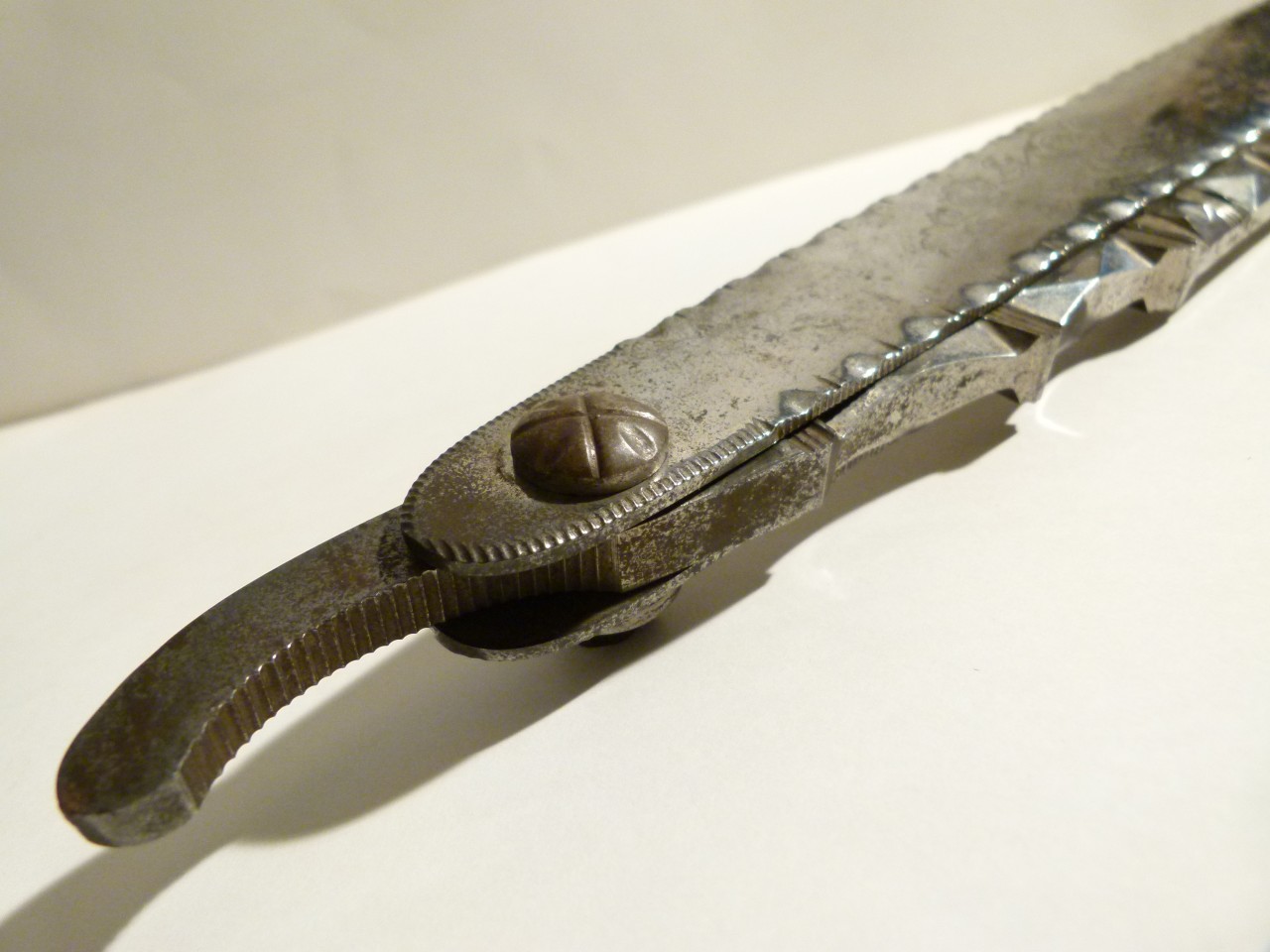 Re: YORK EXHIBITION 1879 CUT THROAT RAZORОписание: Spoiler Show 1 of a number of really fantastic items from the family relations of ROBERT SMITH c1859 of the city of York Cutler & Surgical Instrument Maker... later moved to Scarborough ... these items have been in their family for years and used as display items in their shops.... most of the items are 1 OFF UNIQUE items that you will never see again... made for the Industrial Exhibitions to show off the fine work and various skills the cutlers could produce...from the beautiful fine engraved and gilt pictures on the SCISSORS and cutlery knives etc ... from the MASSIVE oversized items to the MINIATURE items too.. working models if you like.. these items are all very rare and are NOT dangerous weapons. Some of you may well be able to do abit more research into the family history and see that Robert Smith had two sons HENRY & GEORGE FREDERICK .. I have 3 documents listed as 1 lot in another listing in my ebay SHOP which are interesting, these include 2 FREEMAN of the CITY of YORK as well as an APPRENTICE for the son Geroge Frederick....dated from the 1859 era. Then some of you will also be able to see that the MASSIVE .... 17 inch long oversized absolute stunning UNIQUE , horn handled 3 blade engraved YORK INDUSTRIAL EXHIBITION 1879 by R. SMITH with a picture of the building all gilt....I was the UNDERBIDDER of this museum quality item at £5200 ...sold for £5400 ....that was before commission . the item I hope has gone to a good home.. which had an estimated auction price of £300-£500. All these items are worthy of being in a good private collection and SOME are certainly MUSEUM quality items which as I keep saying are 1 off UNIQUE items ...some of them you will see MAY have what you think to be expensive prices... but an item is only worth as much as someone wants to pay for it , isnt it.... I am fortunate to go to some good live auctions where these sort of items occur and I tend to buy them.... they are sought after items. I would be happy to sell the items singular or collective to a good science museum or even one of the Museums in York , Castle Museum or the Yorkshire Museum as the items do originate from there and are of course SOCIAL HISTORY items for all to see.. thing is ...I cannot give the items or donate them either as I have to buy items in live auctions to get them myself....but I am negotiable and have sold alot of unique and rare items to museums all over the world. From the R. SMITH lot .. THE DESCRIPTION OF THE ITEM FOR THIS LISTING BELOW This is the mother of all CUT THROAT RAZORS......if you are a collector of such items then this would be the CENTRE PIECE of your collection... there will NOT be many of these made this size... certainly ONLY this one from this company for this year.....RARE as HENS TEETH as I would usually say! As you can see it is MASSIVE ... it dwarfs any cut throat razor I have ever seen before.. and its made of steel ... with decoration along the main body and the handle too.... this is a real piece of SOCIAL HISTORY .... a SHOW OFF item of the cutlers work ....displayed and exhibited at the YORK INDUSTRIAL EXHIBITION 1879 ... see the blade.. which is SHARP and will not take any prisoners... so do be carefull with it ... polished steel and the same shape as a small useable razor.. engraved and gilt ...with swirls and foliage with a picture of the BUILDING in YORK in the centre.. wording below. The handle has R. SMITH .. CUTLER & C ....13 HIGH OUSEGATE YORK ....on the centre.. with foliage and swirls at the side too. The steel has dark stains in places.. this item has been in the SCARBORO shop window of the SMITH cutlers for many years... it could soon be well ADMIRED once again in your private collection or a GRAND MUSEUM alike for all to see. It is MASSIVE as I keep banging on about it.. its 17 inch long x 2 and half inch wide x nearly 1 and a 1/4inch deep at the nut and bolts holding it all together. .....when in the closed position...x 27 inch long when the blade is right out x 1 and 3/4inch wide blade...it all weighs approx.....1.178kilos... so not only is it long its chuffing heavy as well.! This is not a dangerous weapon...it was made especially for a Victorian exhibition to show off the cutlers skill and not to be used. вес: 1.178 кг цена: GBP 9,950.00 (400 000 руб) пересылка: бесплатно Фотки для понимания размера: