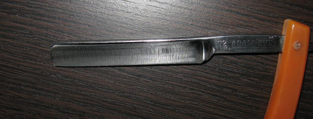 Часто тканевый участок игнорируют и правят только кожей. В общем случае действует правило 15 на 50 – 15 раз провести по ткани и 50 раз – по коже ( не дай бог лишний раз проведёшь и всё, можно бритву выкидывать). Процесс здесь обратен хонингованию: держа бритву за голень с одной стороны, и придерживая двумя или тремя пальцами, с другой стороны, лезвие кладется плашмя на ремень и тянется вдоль него острым краем назад. Опять же важно, слегка надавливать на бритву, обеспечивая контакт по всей поверхности – от гребня до кромки лезвия, иначе можно погнуть кромку и испортить бритву ( видимо у товарища бритва из картона).
