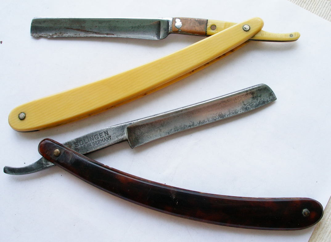 Оригинальные бритвы знаменитой немецкой фирмы Золинген, обе до 1945 года. Одна с костяной ручкой, немного реставрирована ещё в те времена. Цена за все. Предоплата.